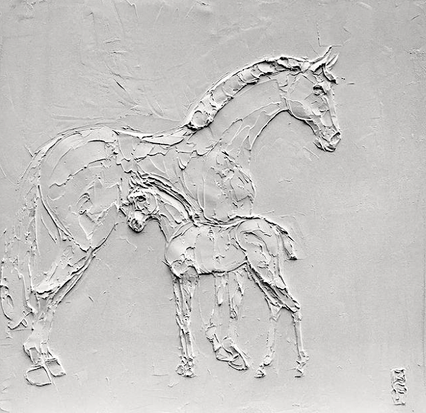 Broodmare And Foal 12 In X 16 In Sculpted Titanium White Oil Paint On Canvas 2022