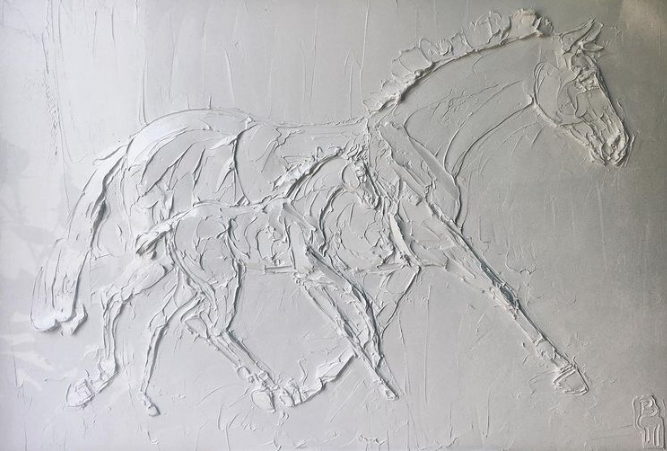 Mare And Foal 60 Cm X 100 Cm Sculpted Titanium White Oil Paint On Canvas 2022