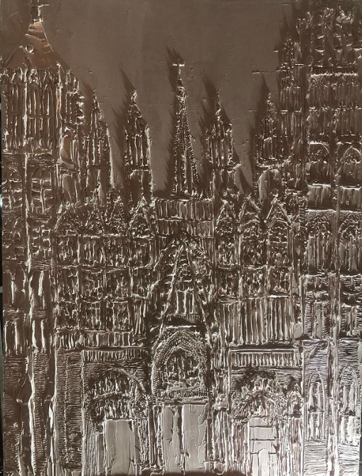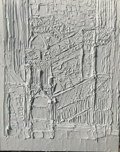 Cathedrale Notre Dame De Paris 36 In X 48 In Sculpted Titanium White Oil Paint On Canvas 2022