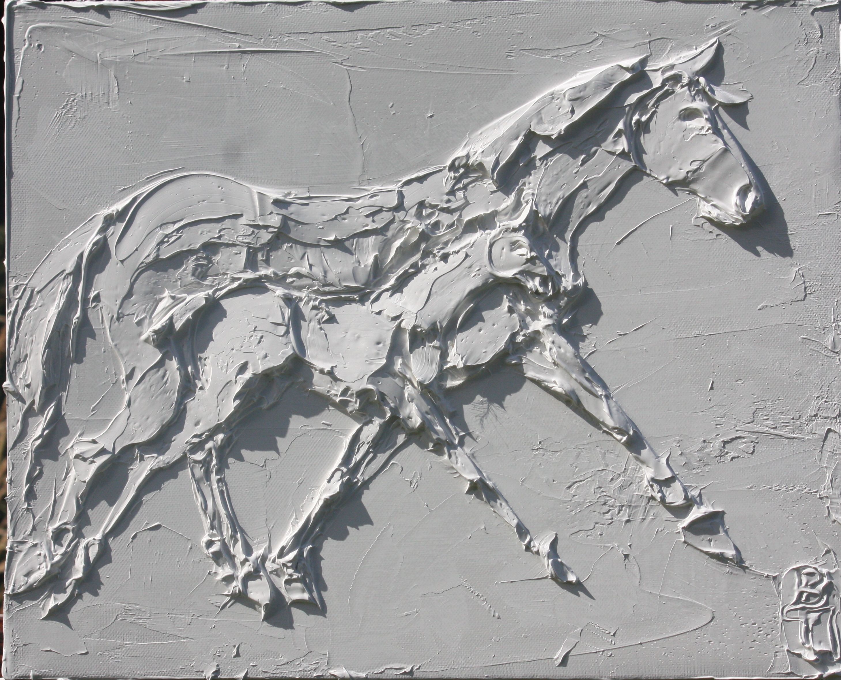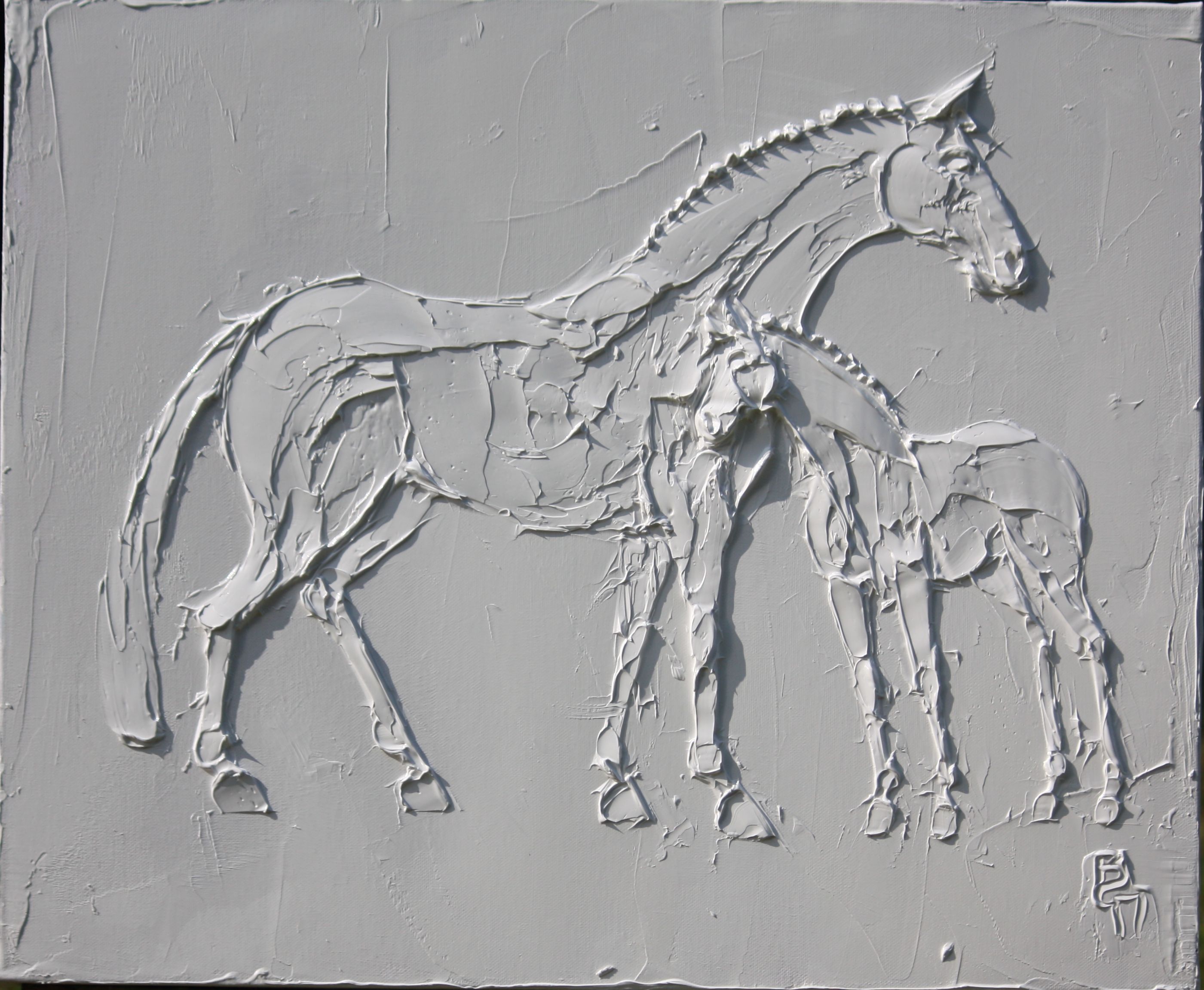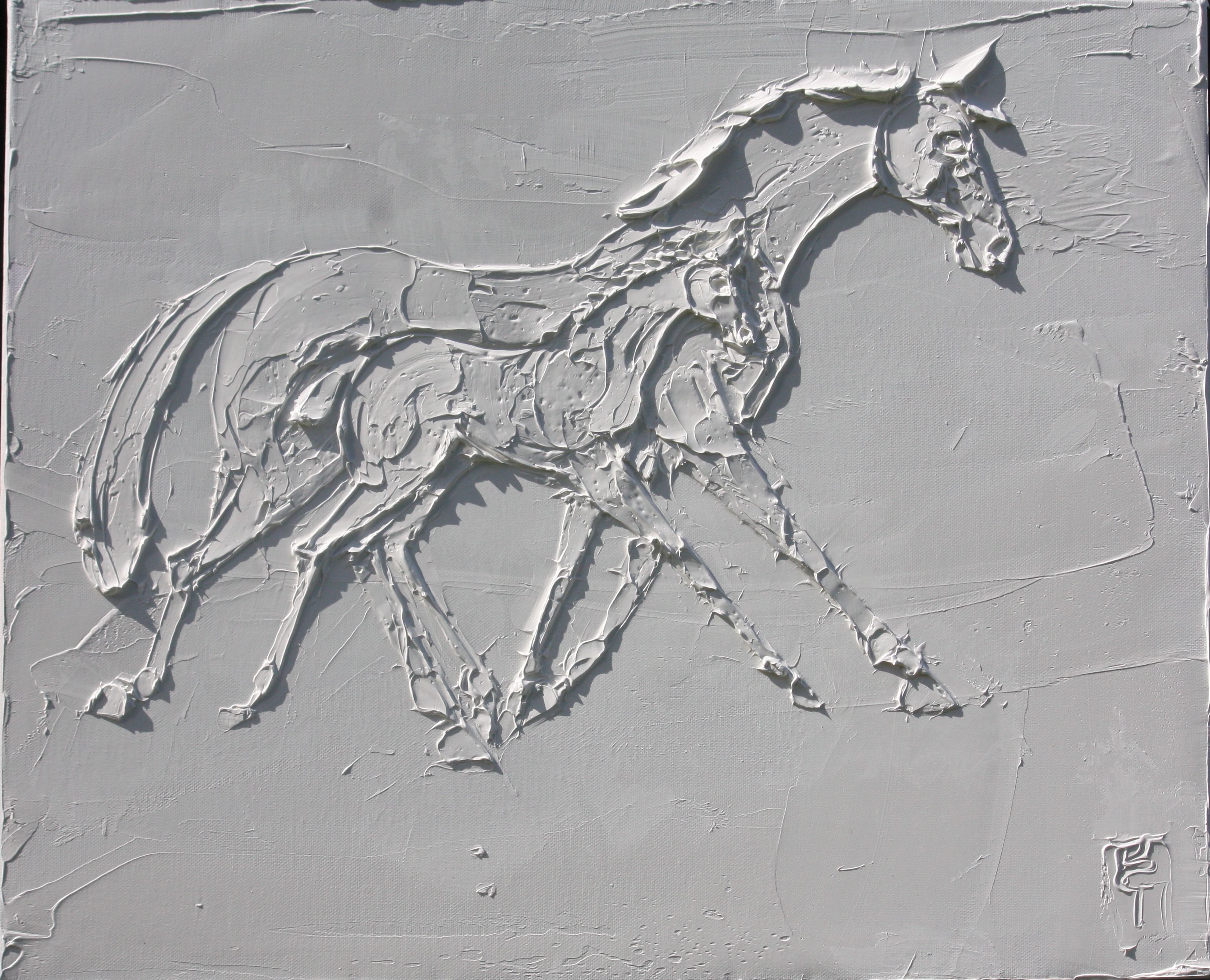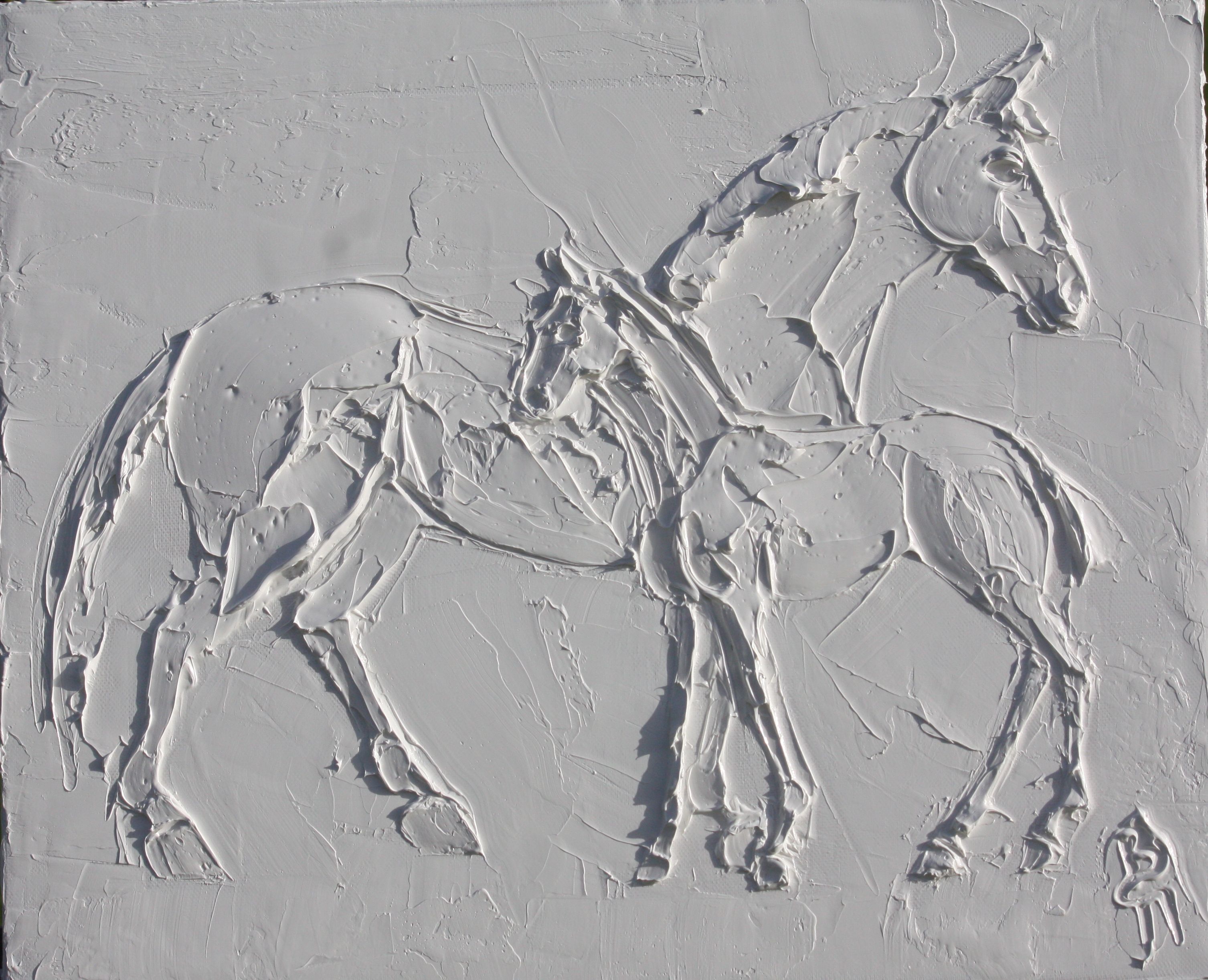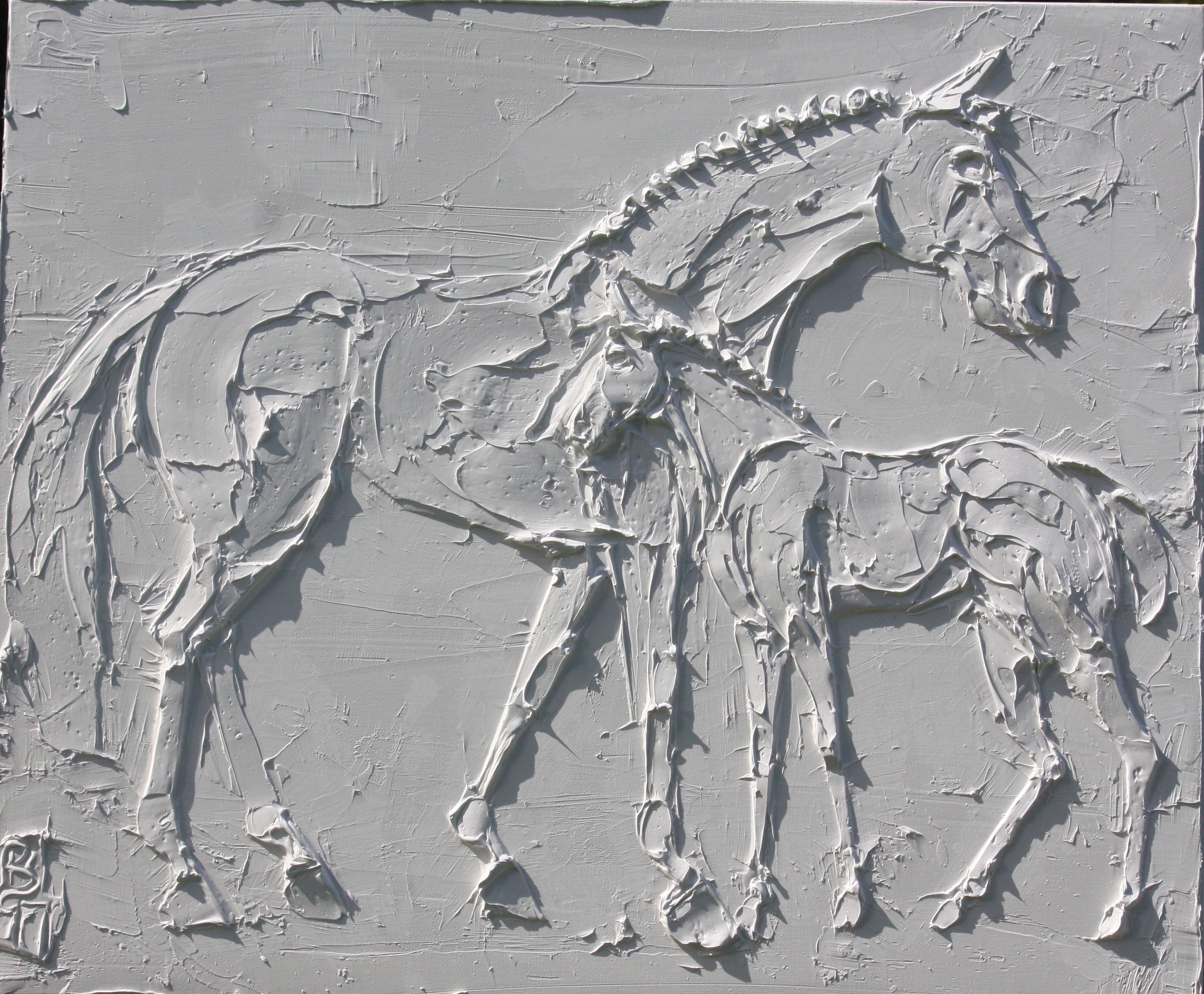 Broodmare 24 In x 20 In sculpted titanium white oil paint on canvas