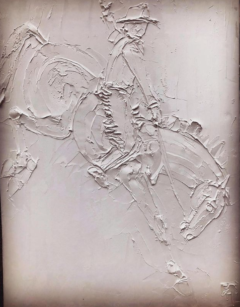 Cowboy 10 In X 10 In Sculpted Titanium White Oil Paint On Canvas 2023