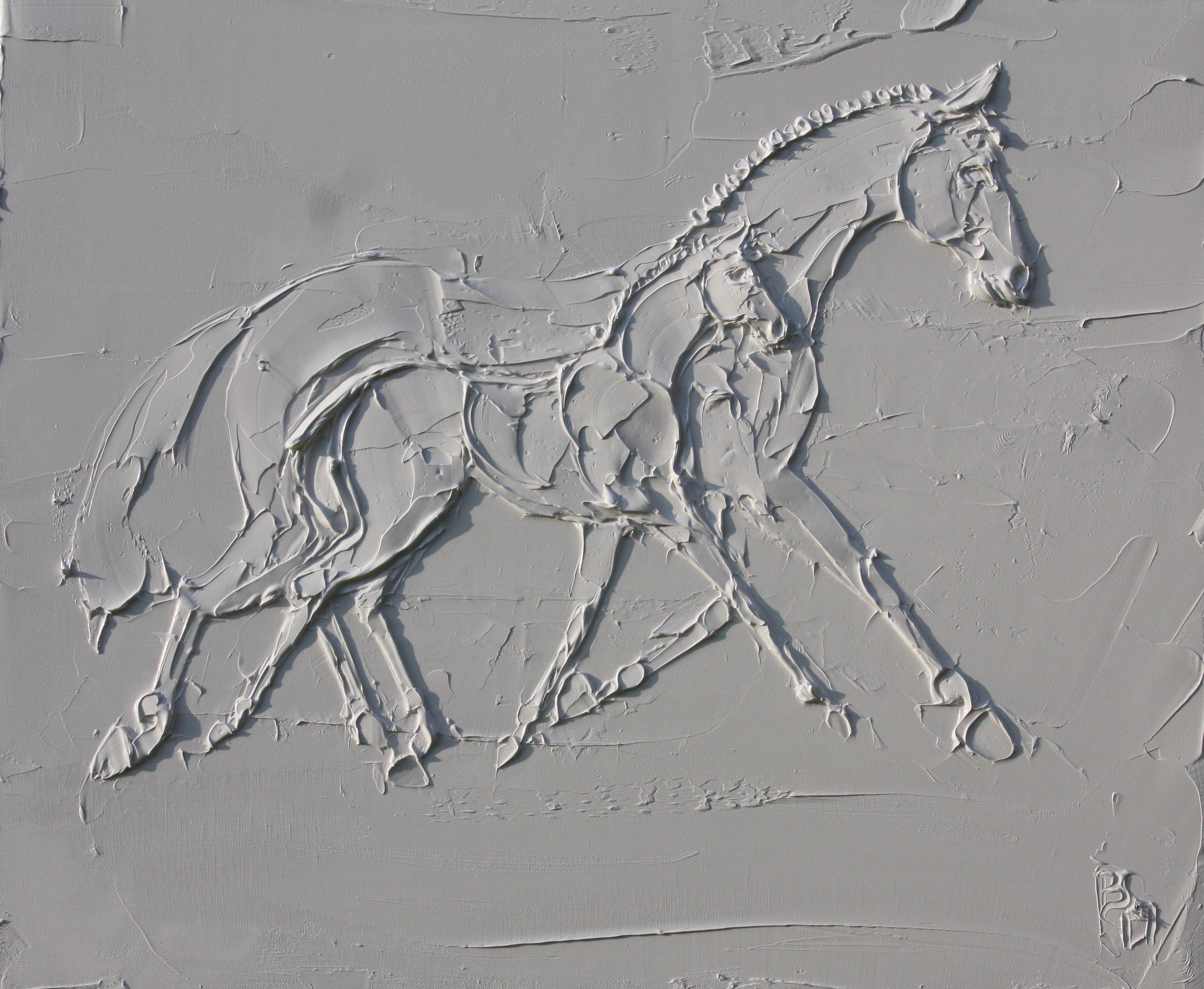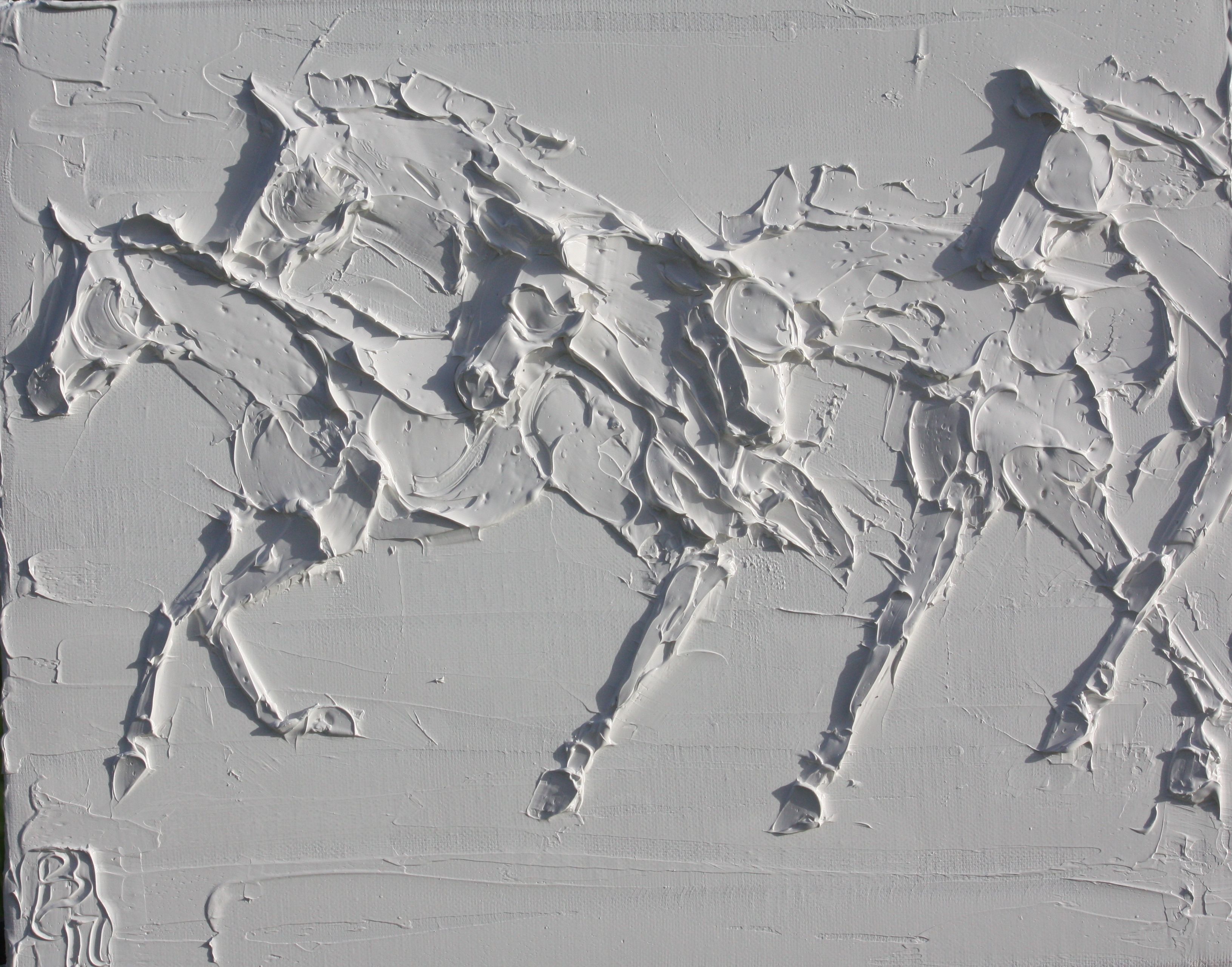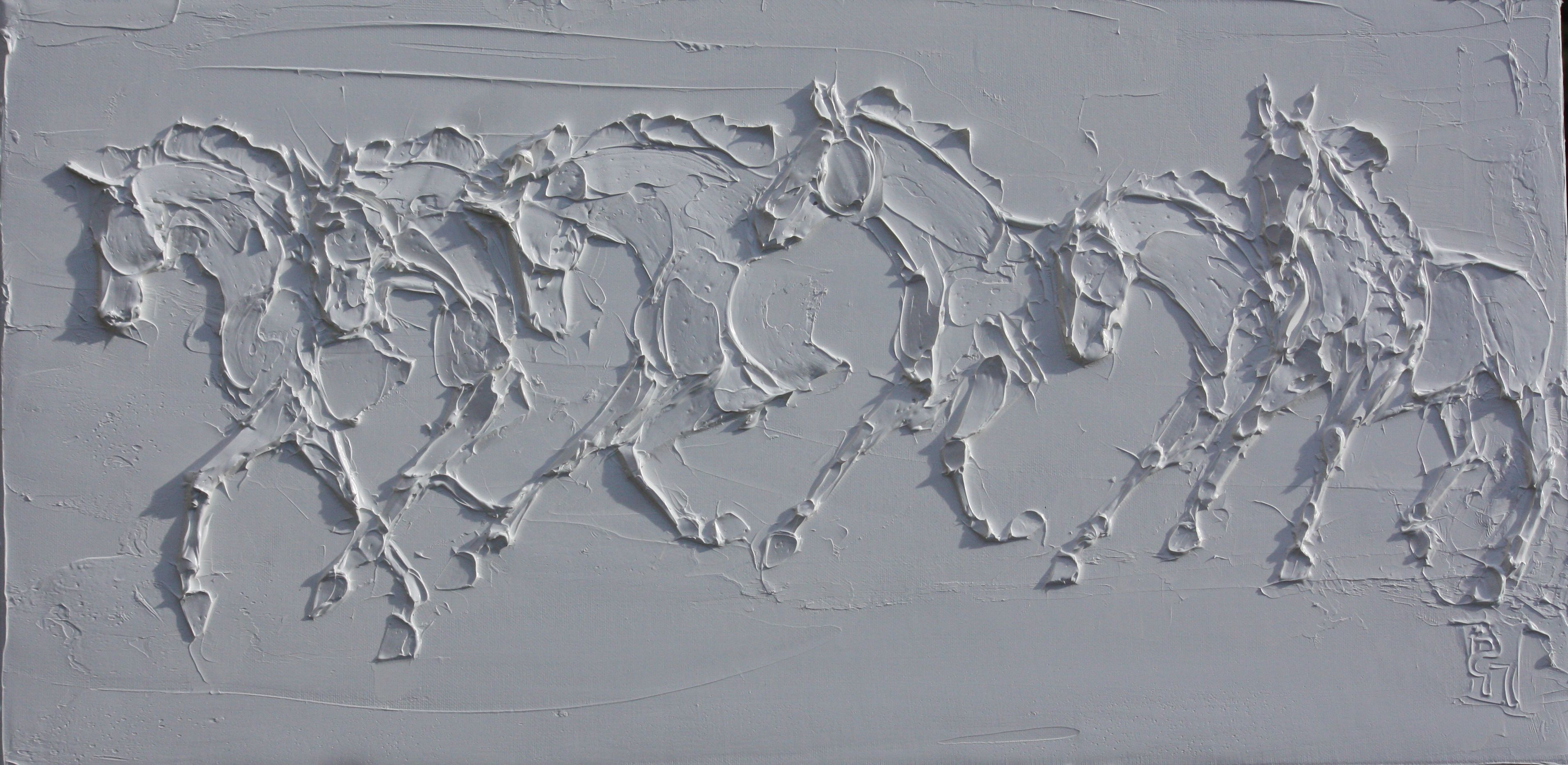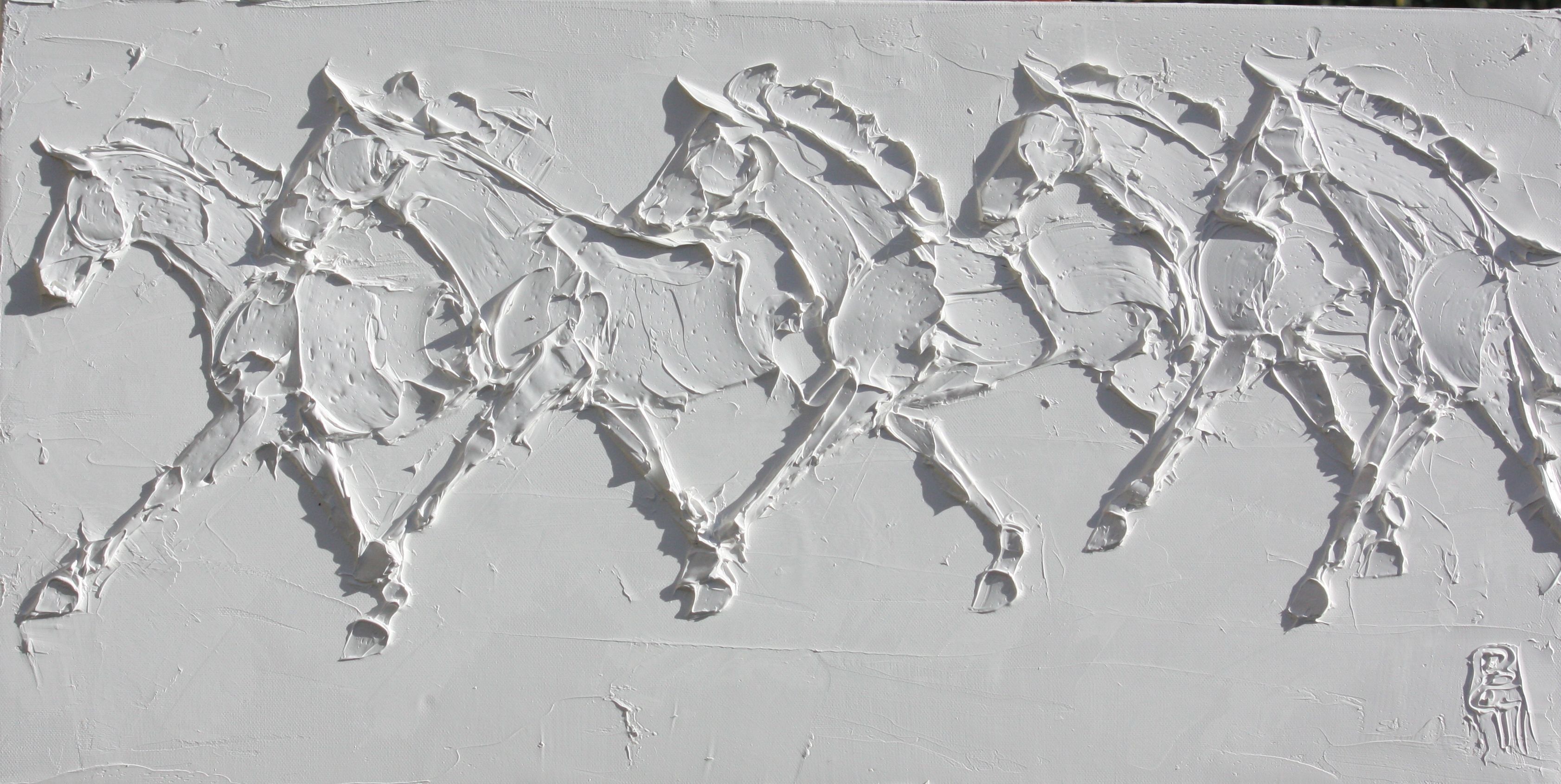 Sport Horses 24 In X 24 In Sculpted Titanium White Oil Paint On Canvas 2023