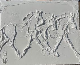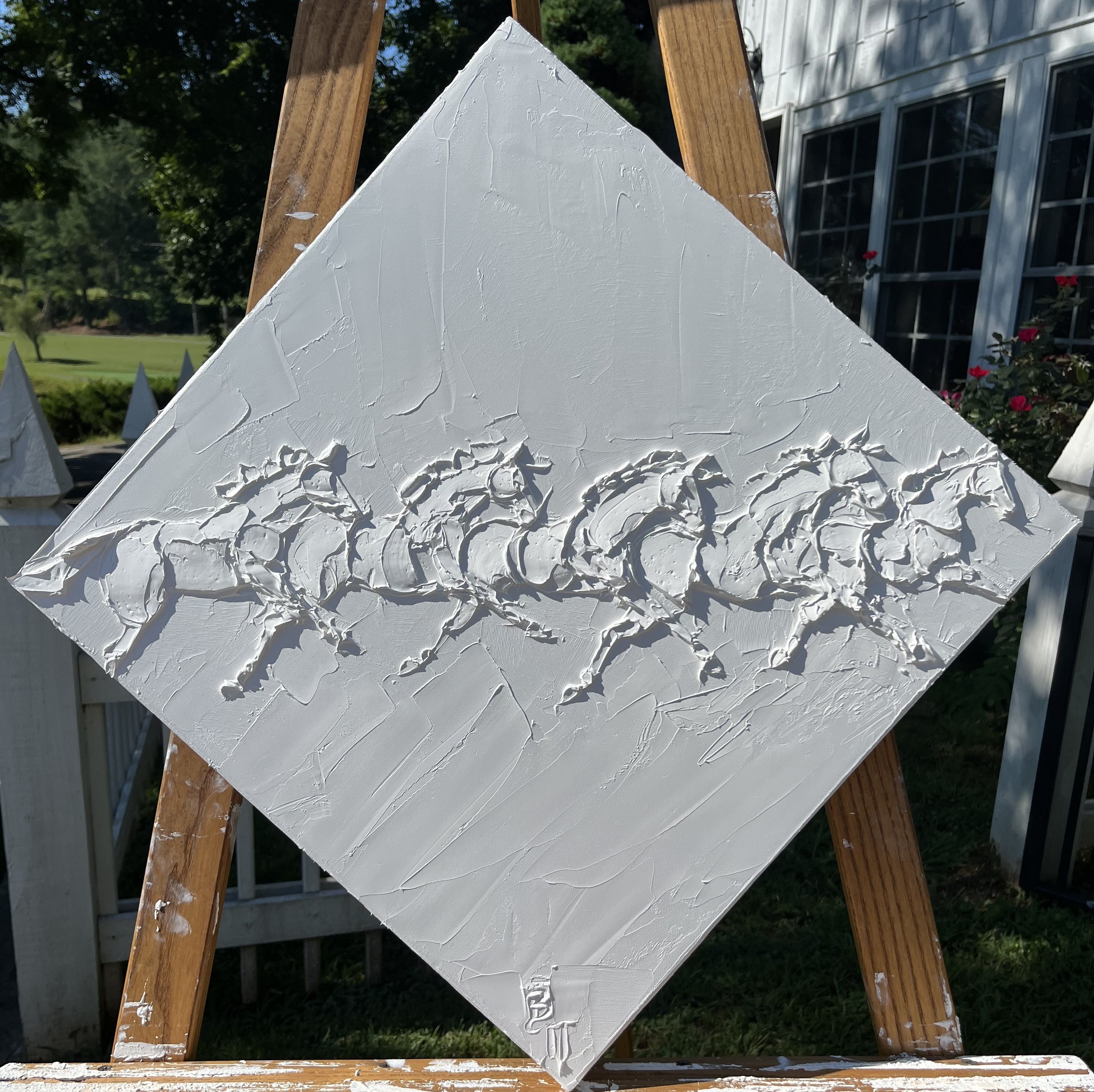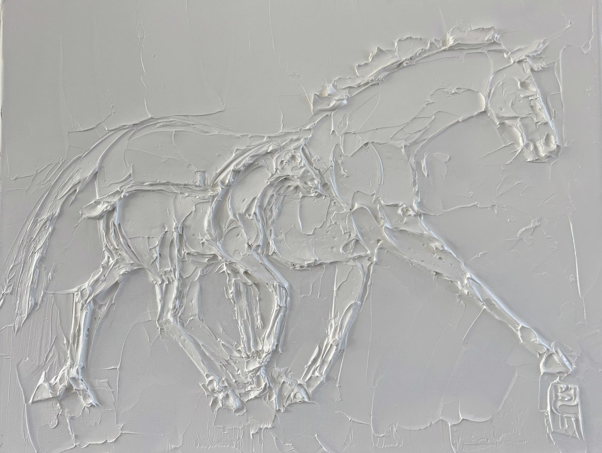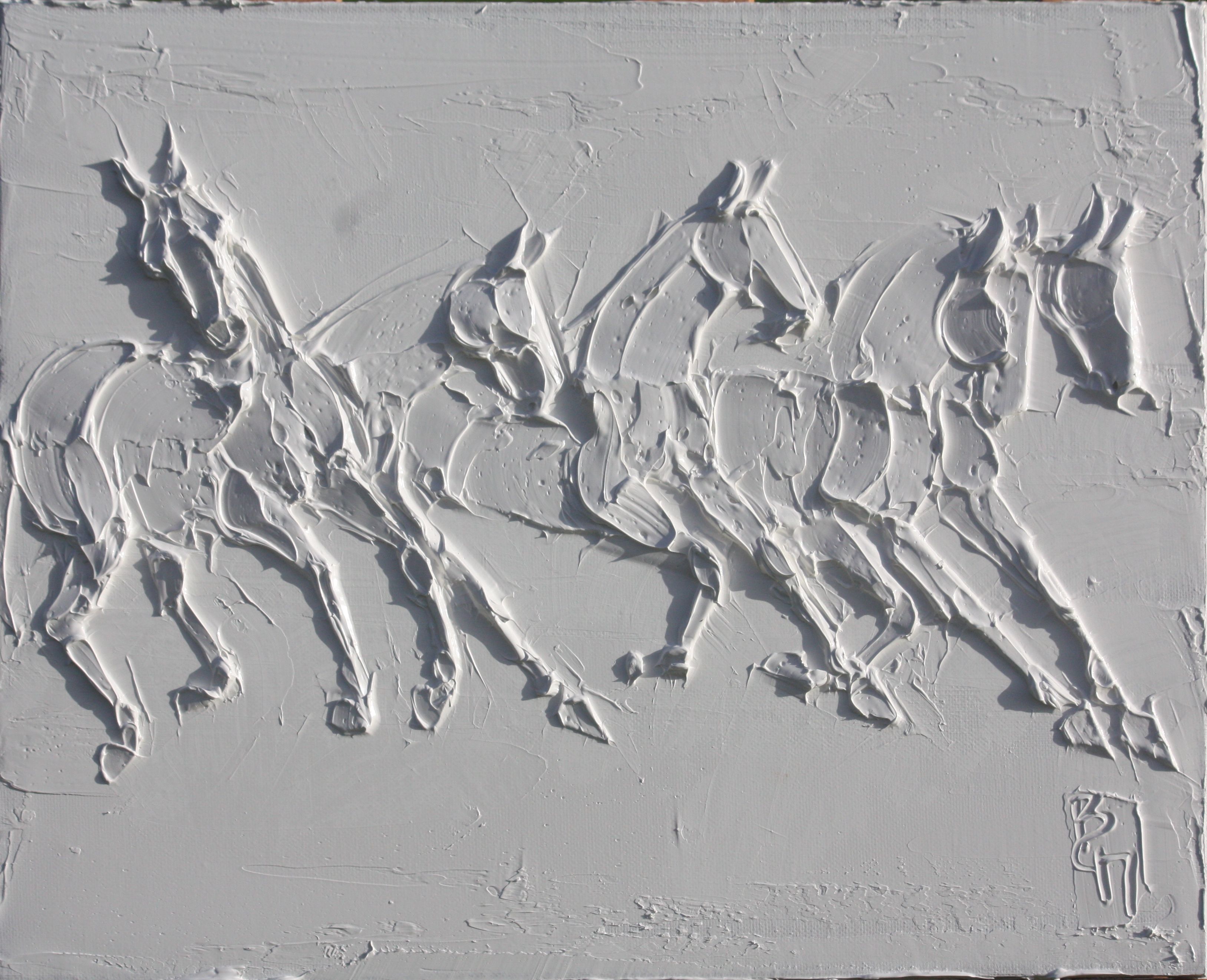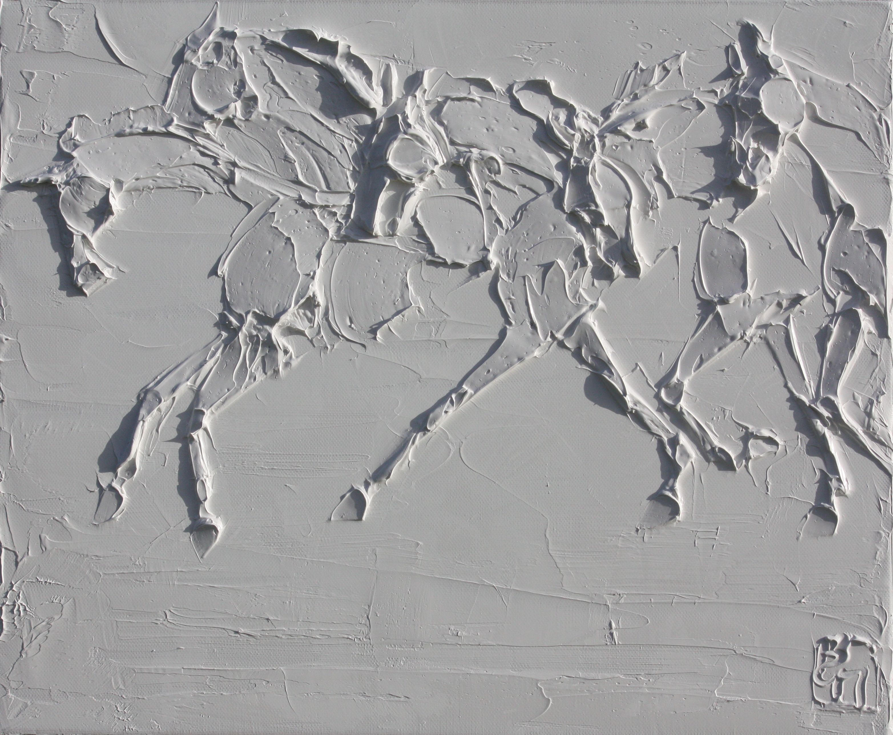 Sport Horses 24 In X 24 In Sculpted Titanium White Oil Paint On Canvas 2023