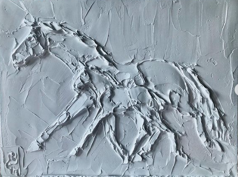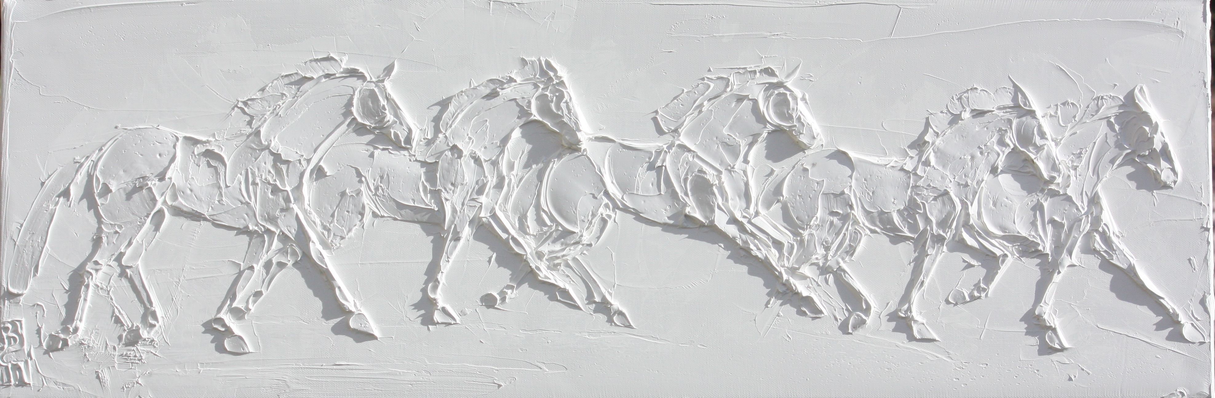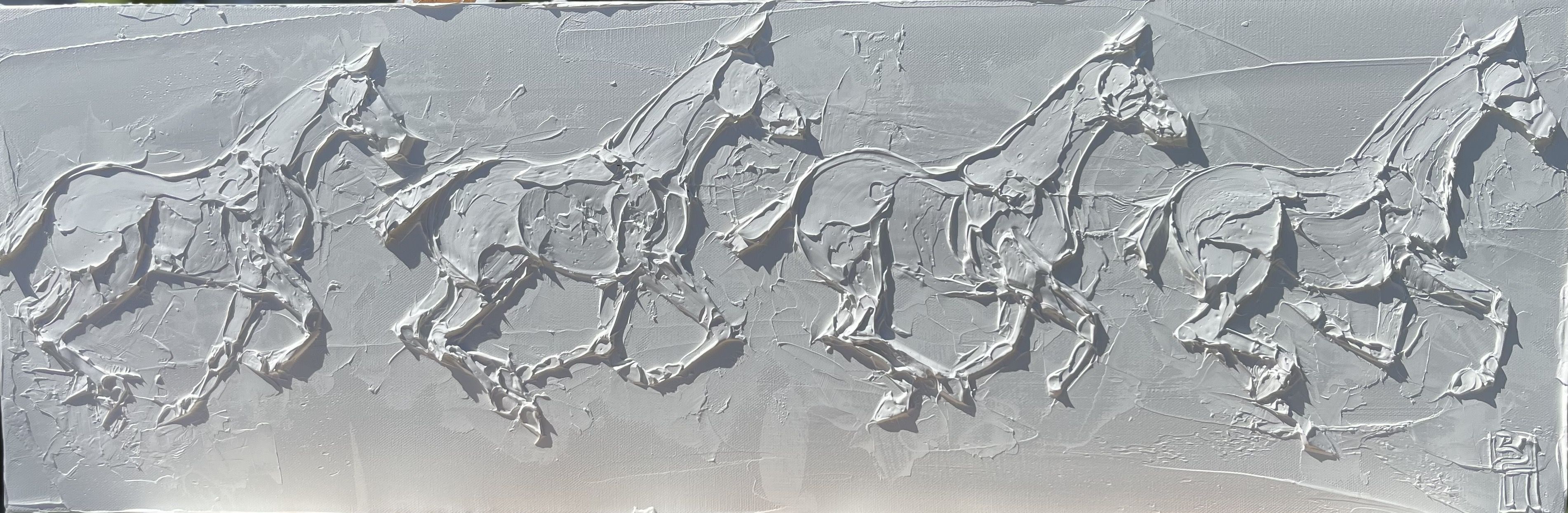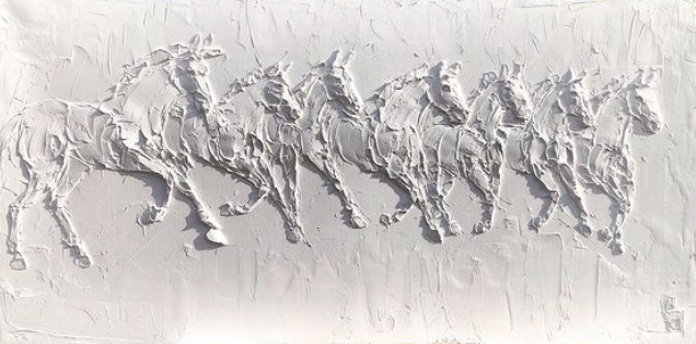 Wild Horses 8 In X 10 In Sculpted Titanuim White Oil Paint On Canvas 2023