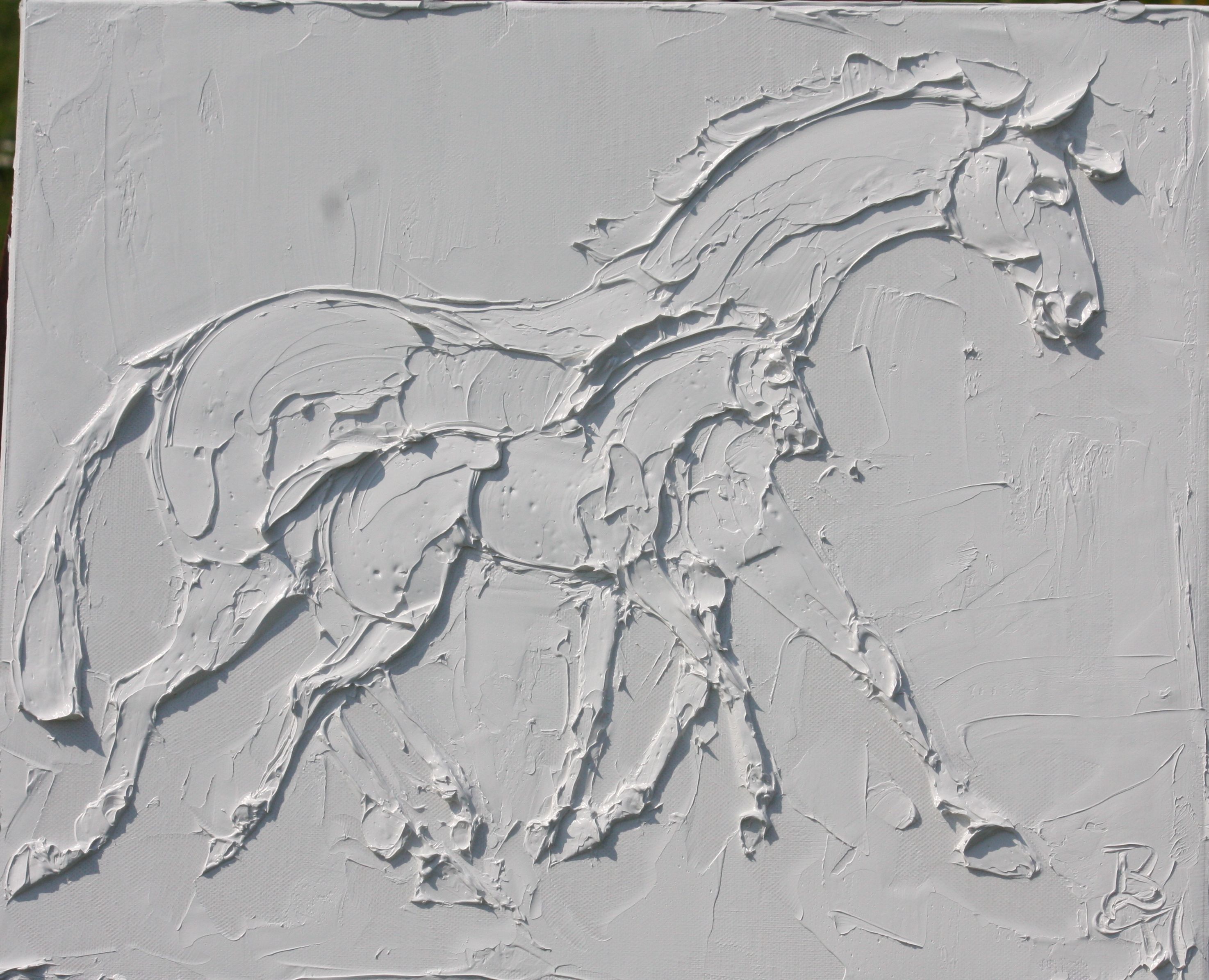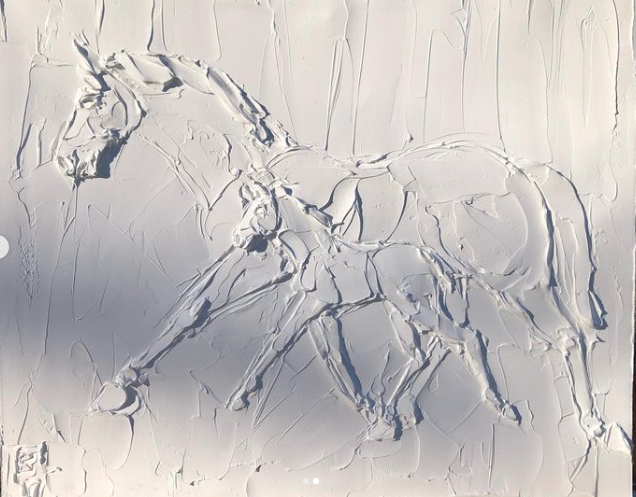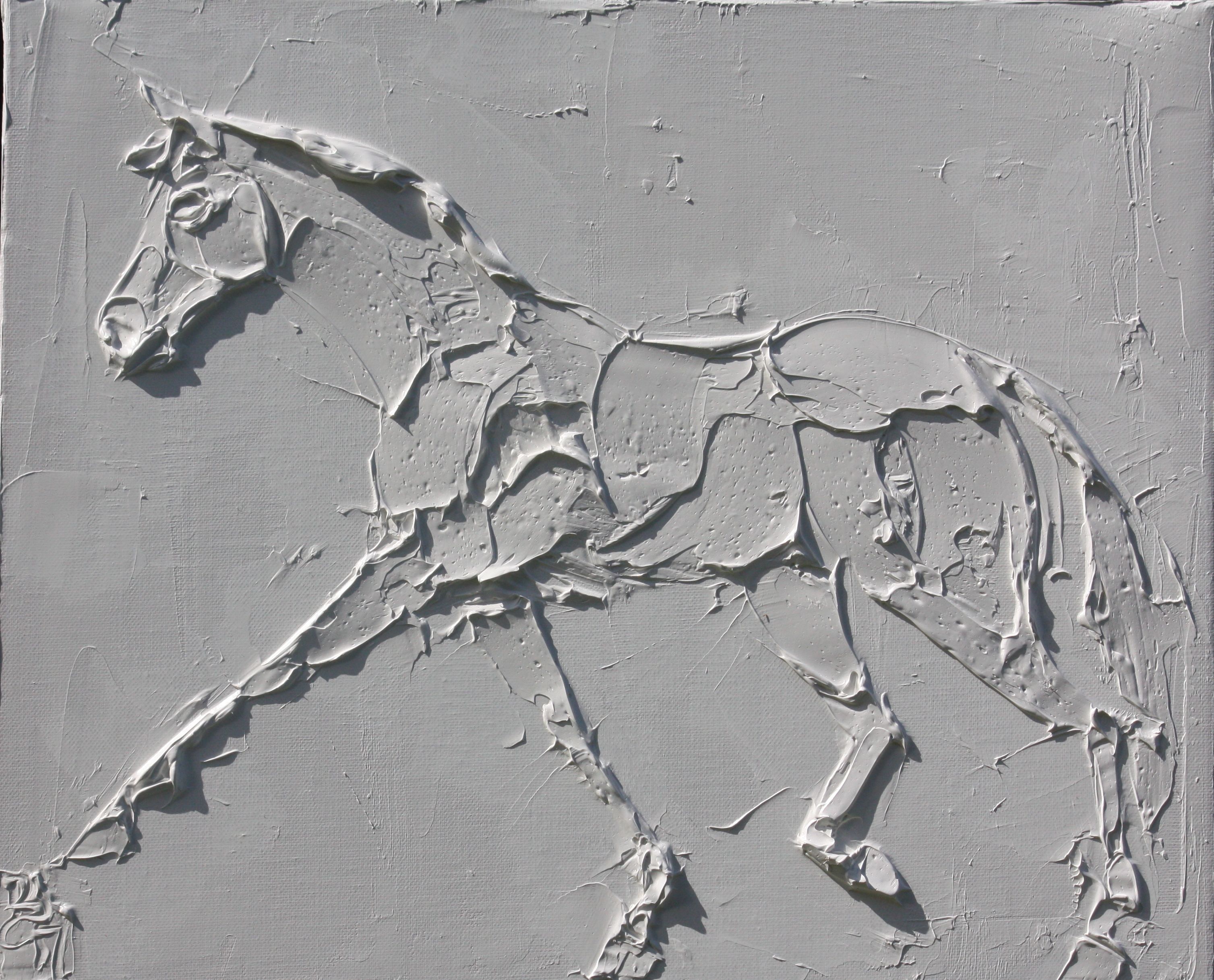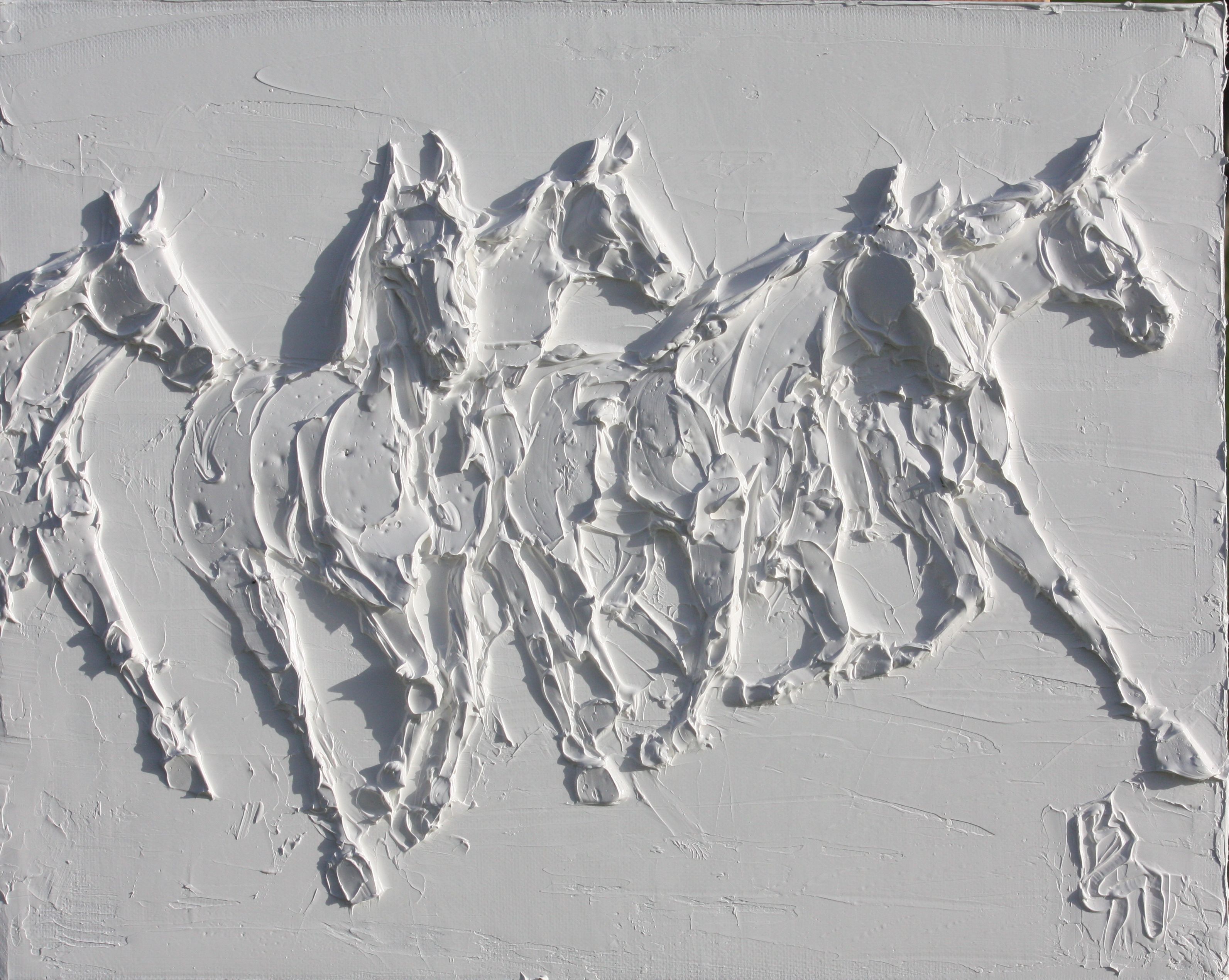 Wild Horses 8 In X 10 In Sculpted Titanuim White Oil Paint On Canvas 2023