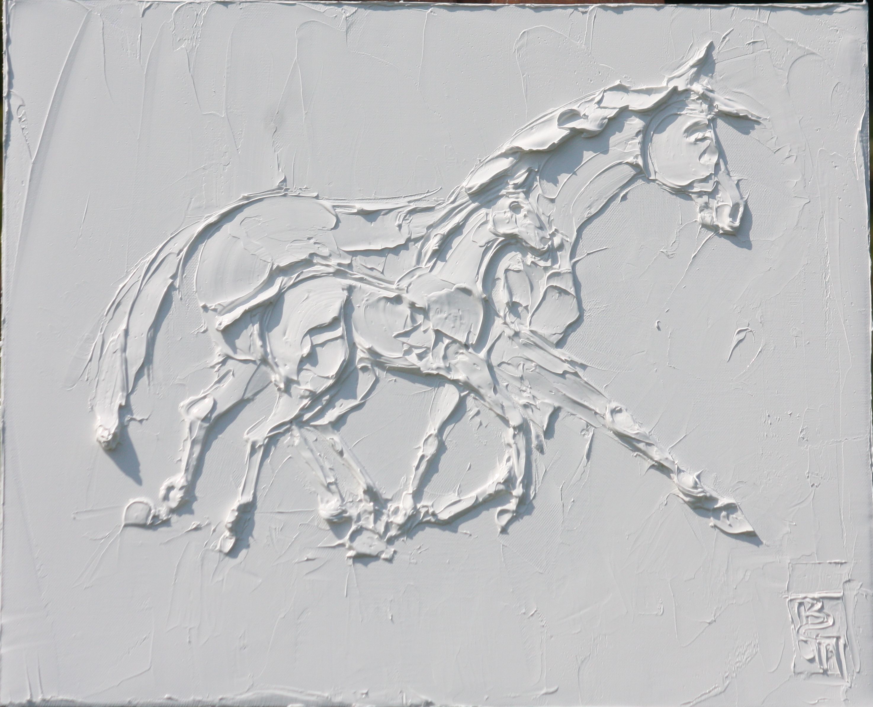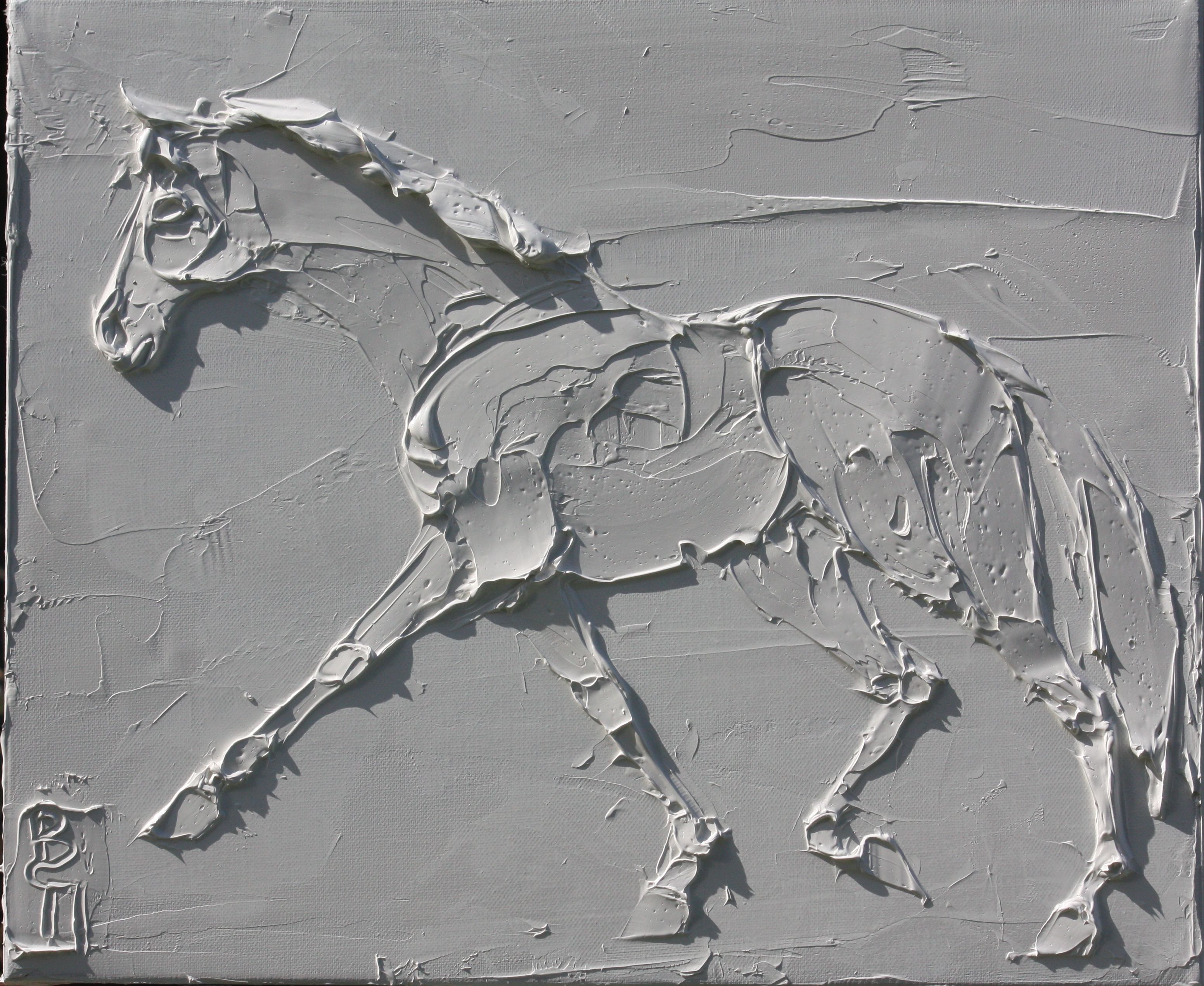 Polo Horse 10 In X 10 In Sculpted Titanium White Oil Paint On Canvas 2023