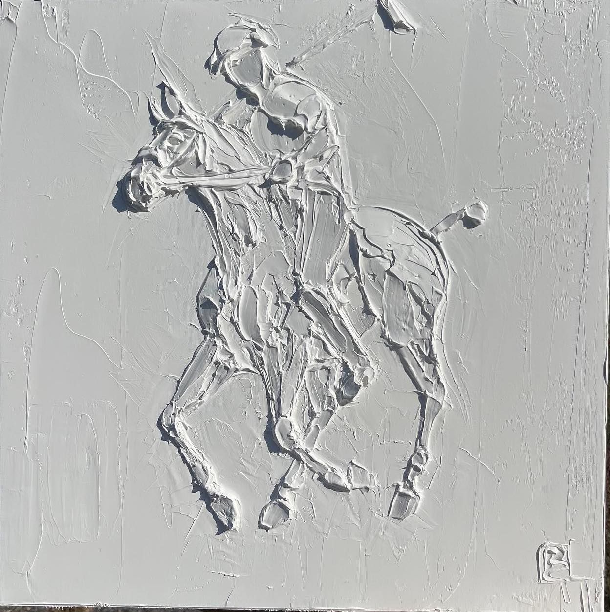 Polo Horse 12 In X 12 In Sculpted Titanium White Oil Paint On Canvas 2023