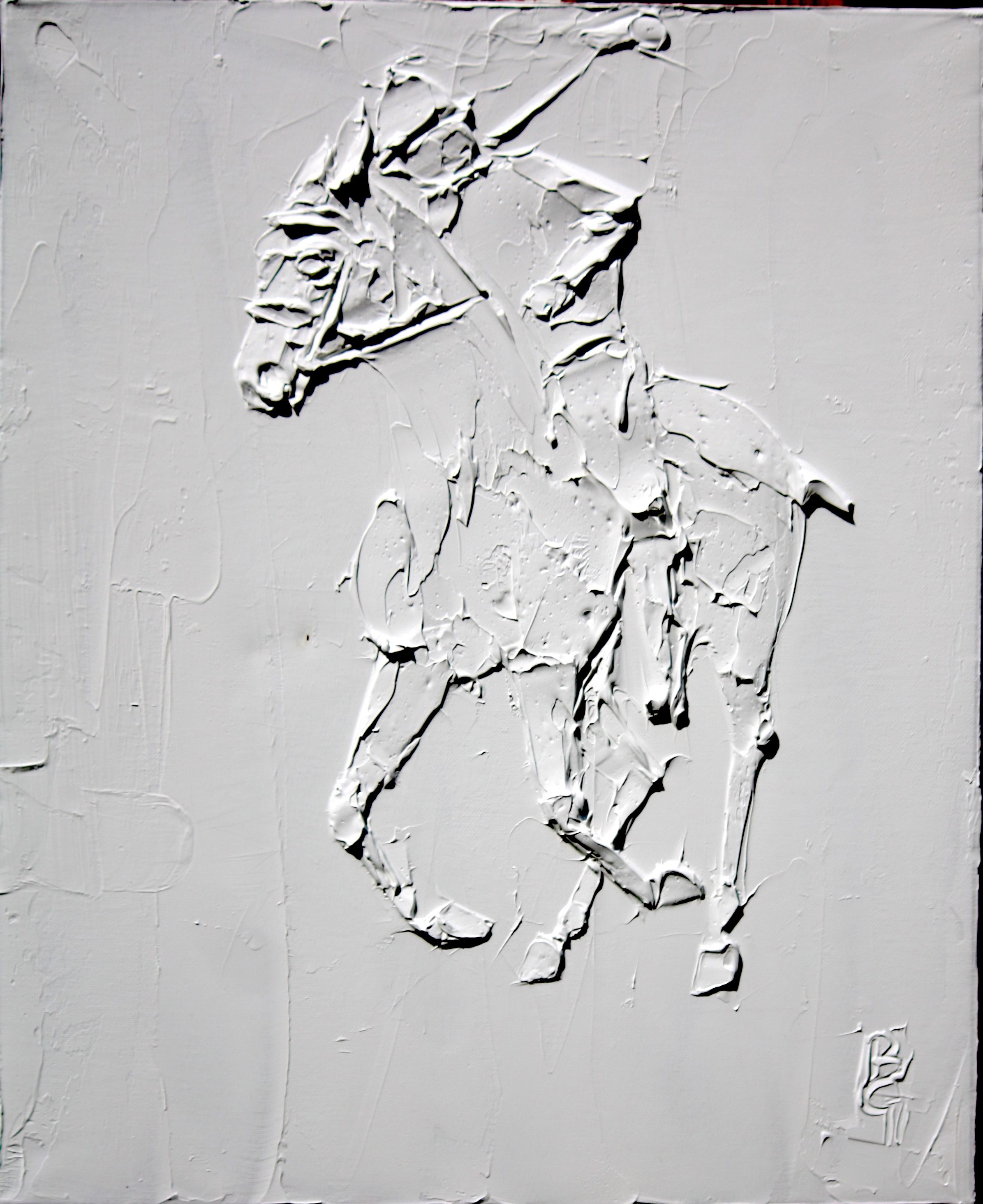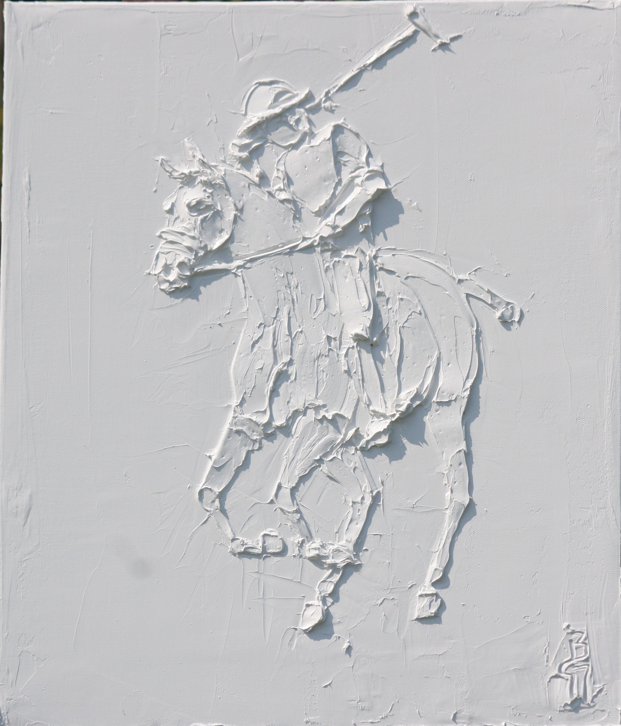 Polo 24 In x 20 In sculpted titanium white oil paint on canvas
