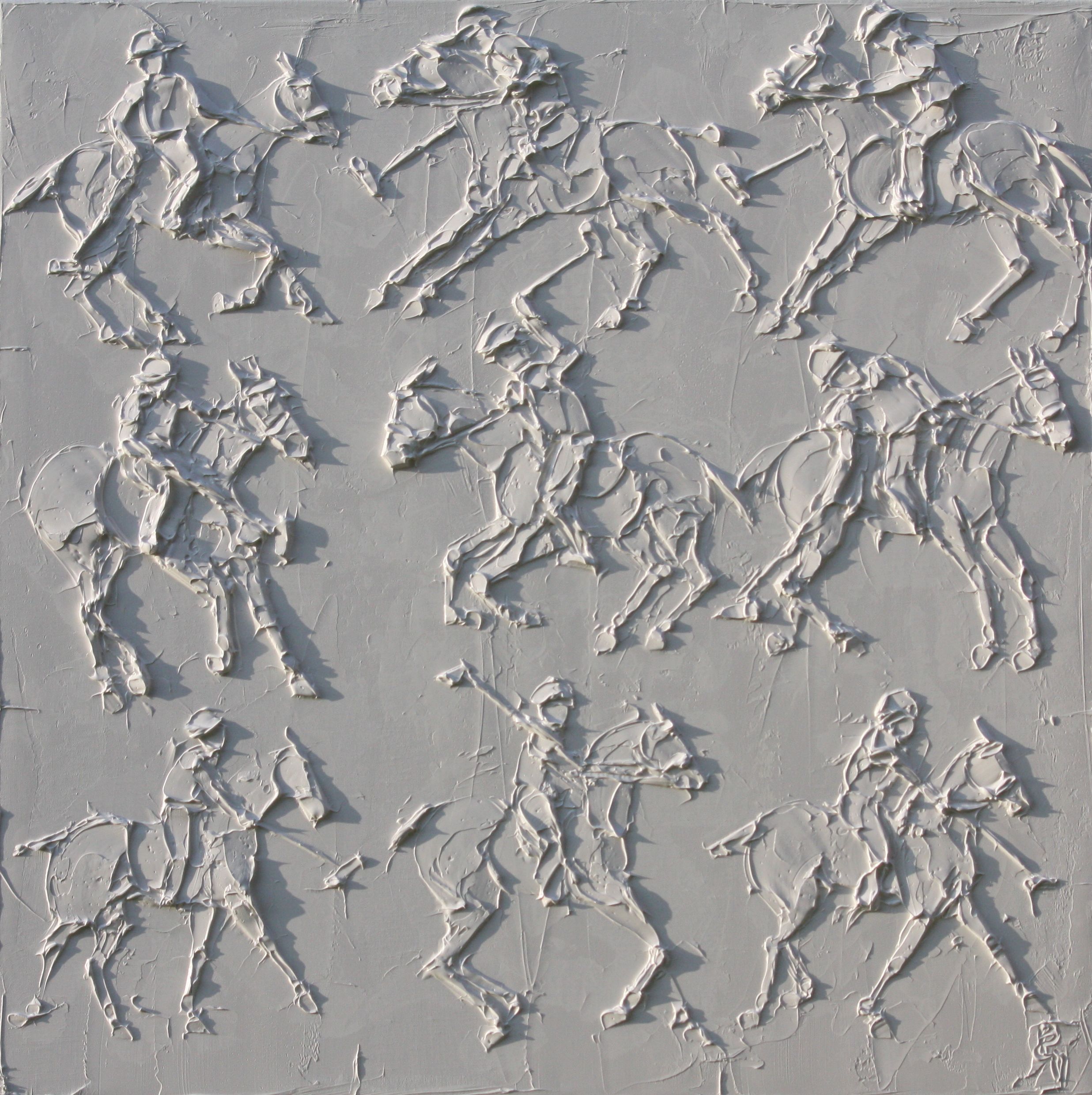 Polo Players 28 In X 28 In Sculpted Titanium White Oil Paint On Canvas 2023