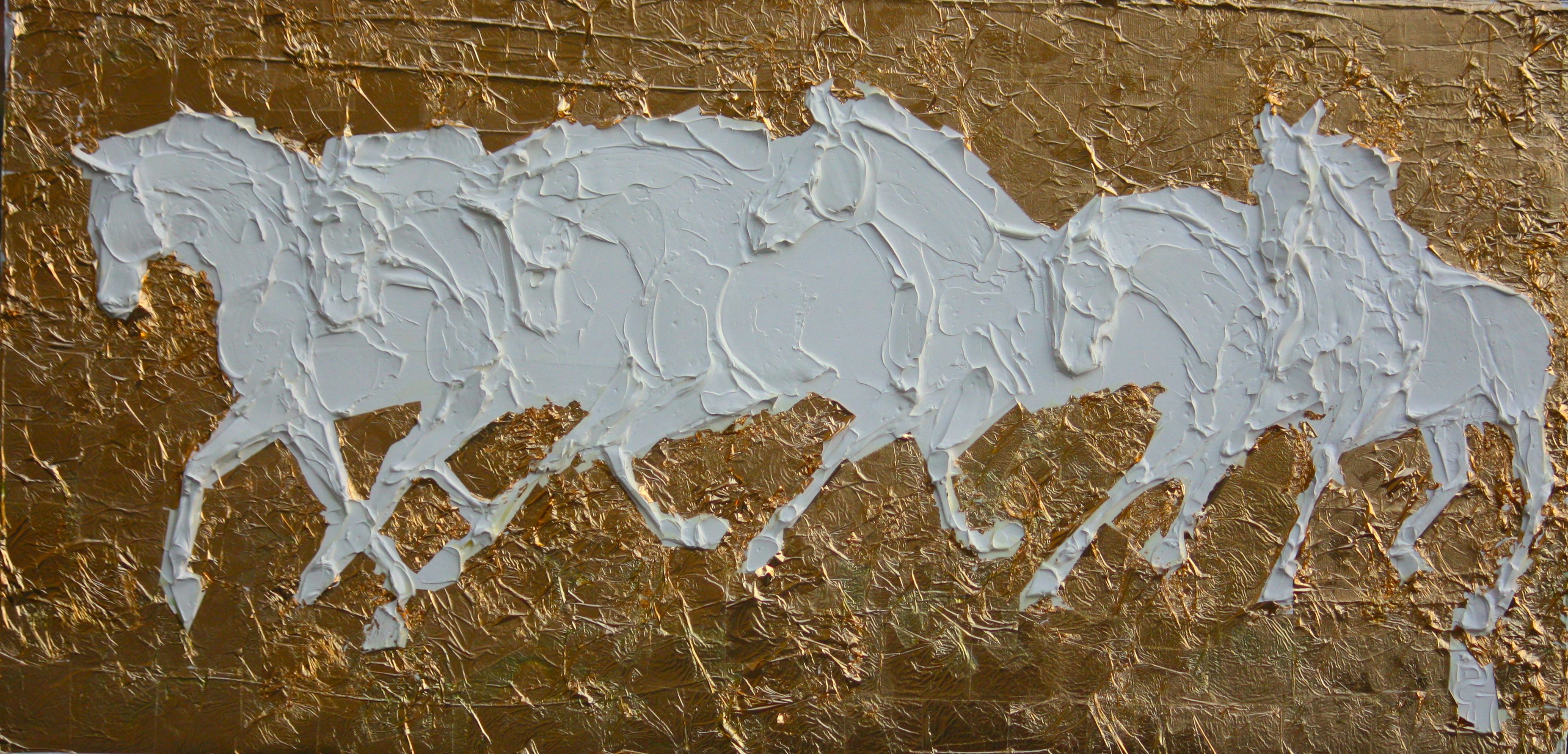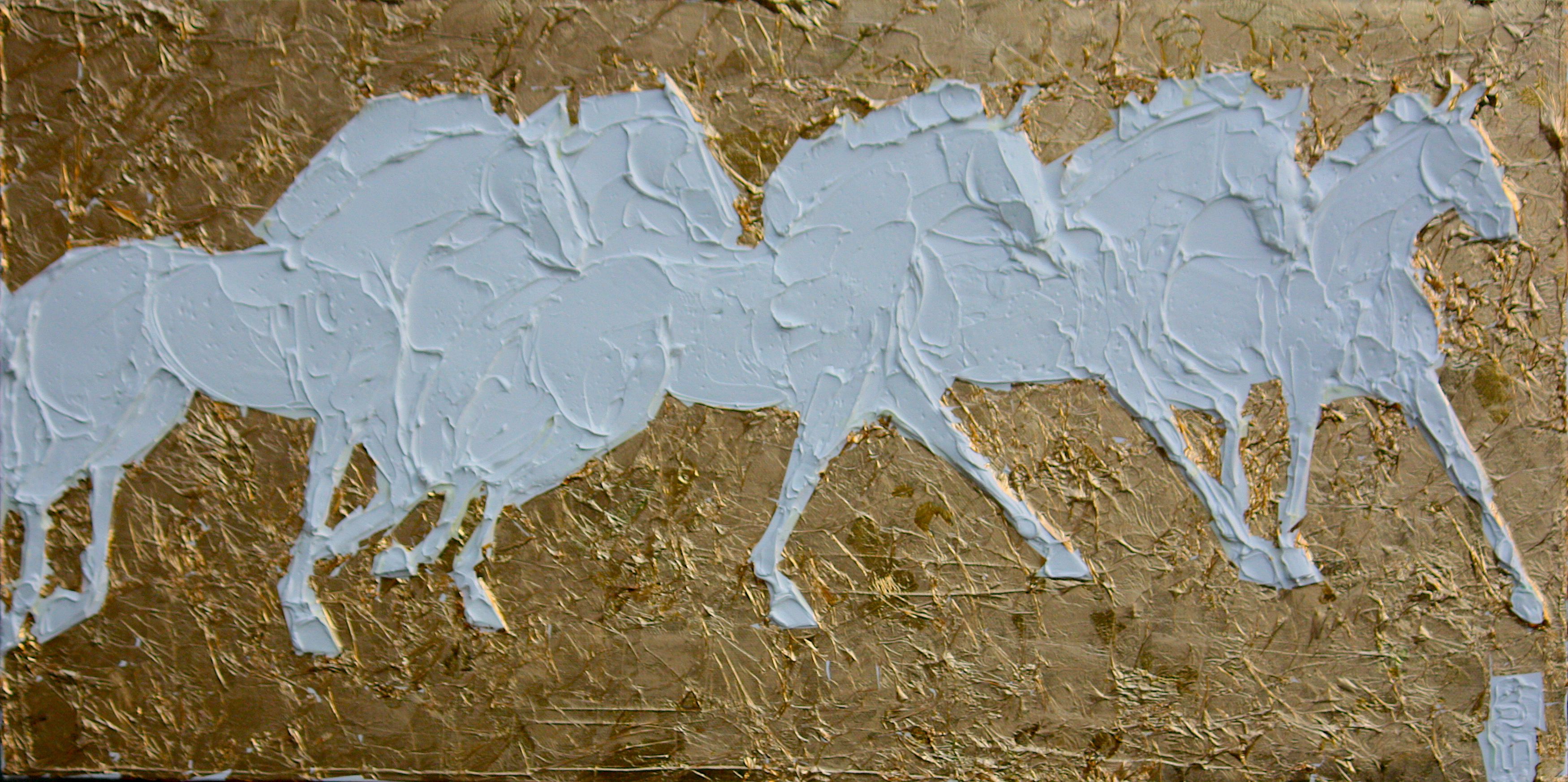 Wild Horses 24 Carat Gold Leaf And Sculpted Titanium White Oil Paint On Canvas 30 Cm X 90 Cm 2023