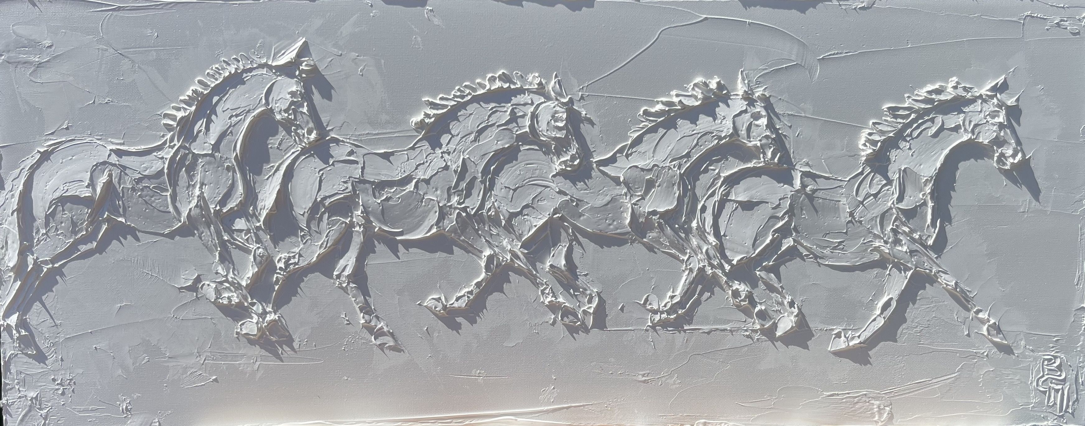 Wild Horses 13 In X 165 In Sculpted Titanium White Oil Paint On Canavs 2023