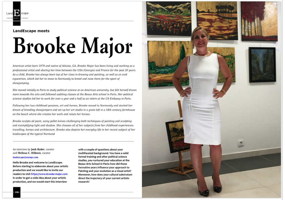 L’empêcheuse de tourner en rond des toiles a vu le jour à Atlanta, aux États-Unis où elle a vécu ses dix-huit premières années, avant de rejoindre Paris pour ses études. « Ma mère ne voulait pas que je suive un cursus d’art parce qu’elle avait peur que je ne réussisse pas », raconte-t-elle. Au final, elle combine les deux : « J’ai regroupé mes cours de Science Po deux jours par semaine, comme ça m’a permis d’étudier en cours libre aux Beaux-Arts à Paris ». Sa nature rebelle ne met pas longtemps à refaire surface lorsqu’elle tombe sur un professeur qui lui dit que la peinture est morte, qu’il ne fallait plus peindre mais faire plutôt de l’art conceptuel. Elle lui répond alors : « Ceux qui savent peindre le font et ceux qui ne savent pas l’enseignent aux autres ». C’est ça, l’audace de Brooke Major.