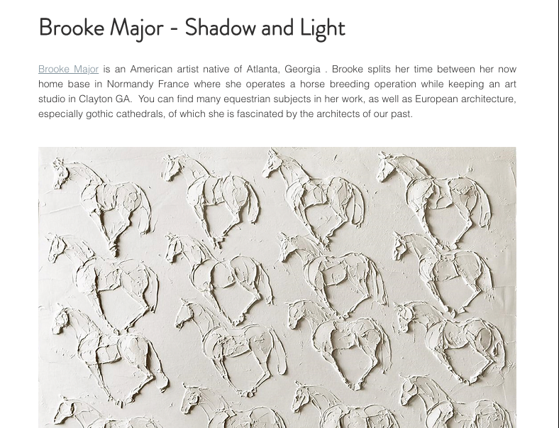 Une exposition de peinture de Mademoiselle Brooke Major se déroulera dans la Galerie du Château. Ce sont des peintures blanches faites à l'huile par la jeune artiste américaine qui expose dans toute la France, ainsi qu'aux Etats Unis. Ses tableaux sont une subtile composition d'ombre et de lumière.