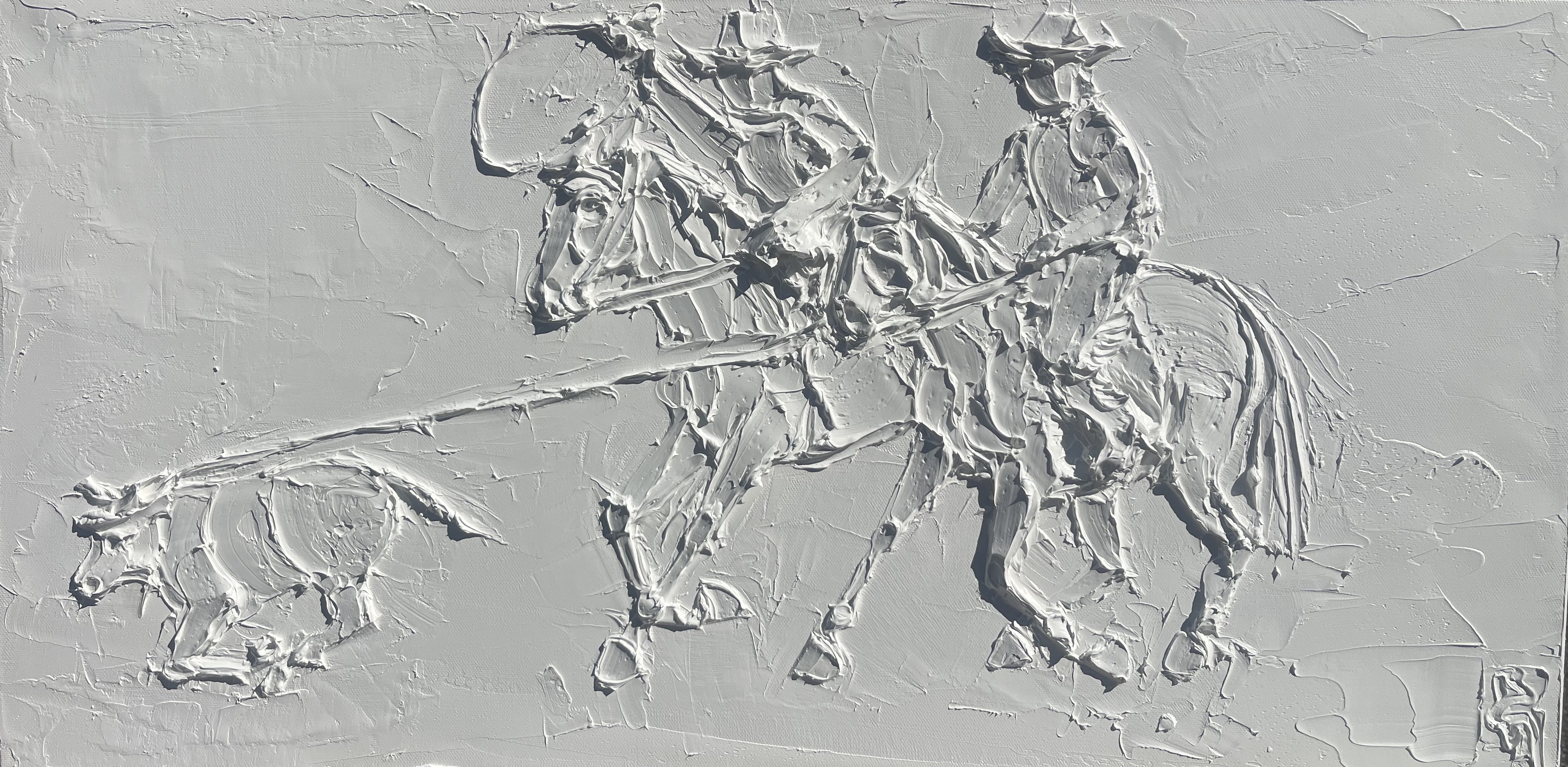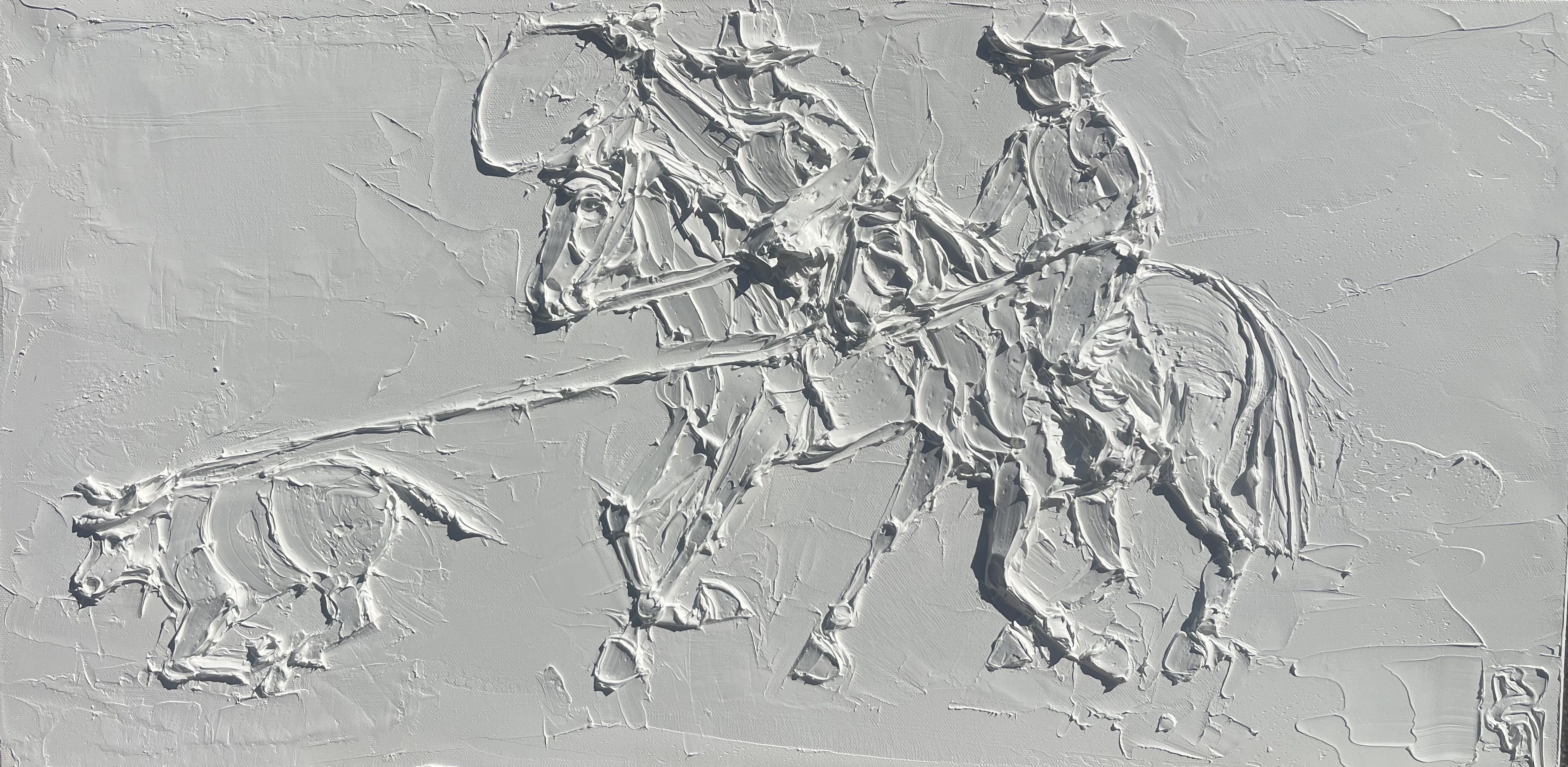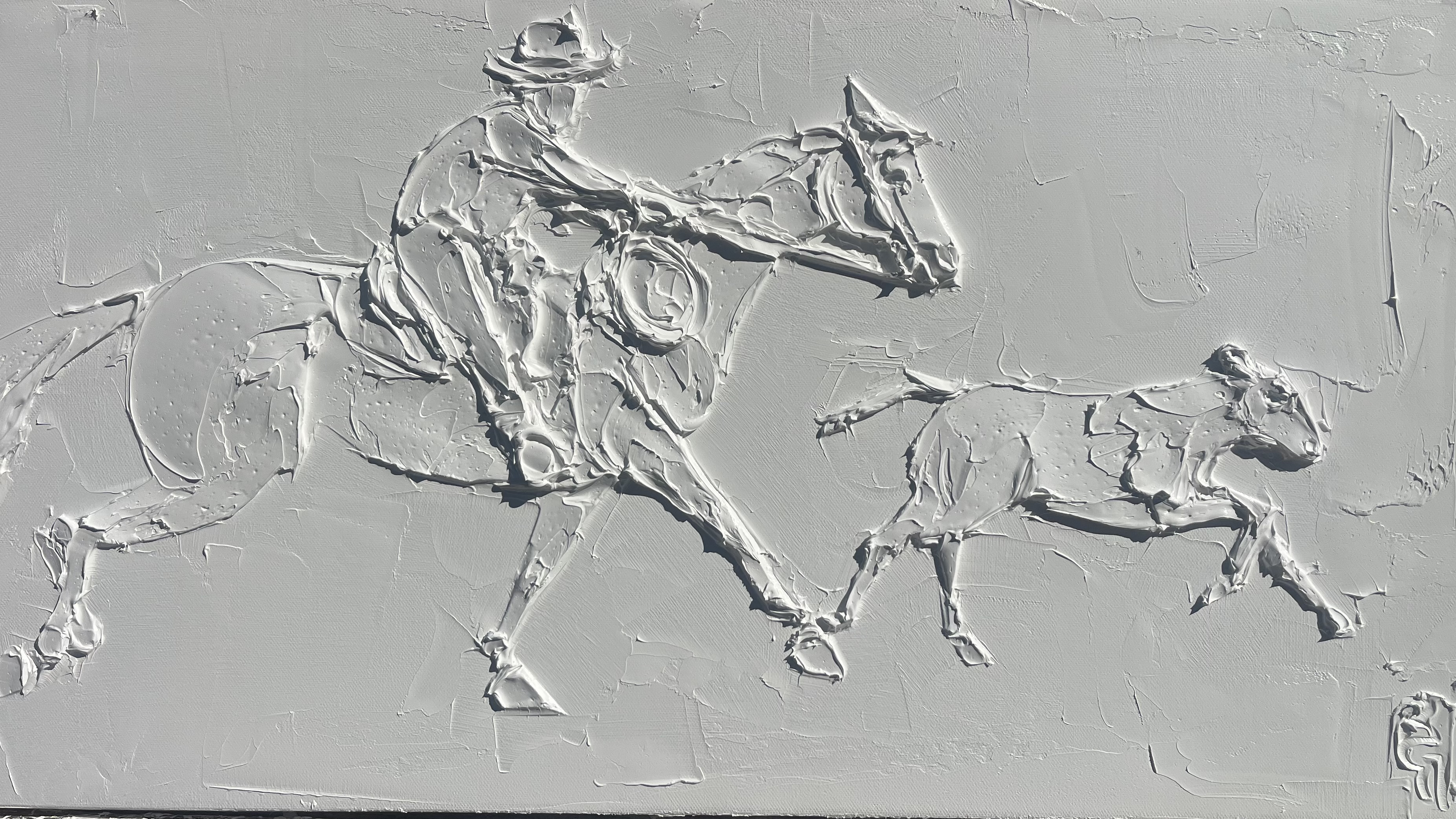 Roping Calves 15 In X 30 In Sculpted Oil Paint On Canvas