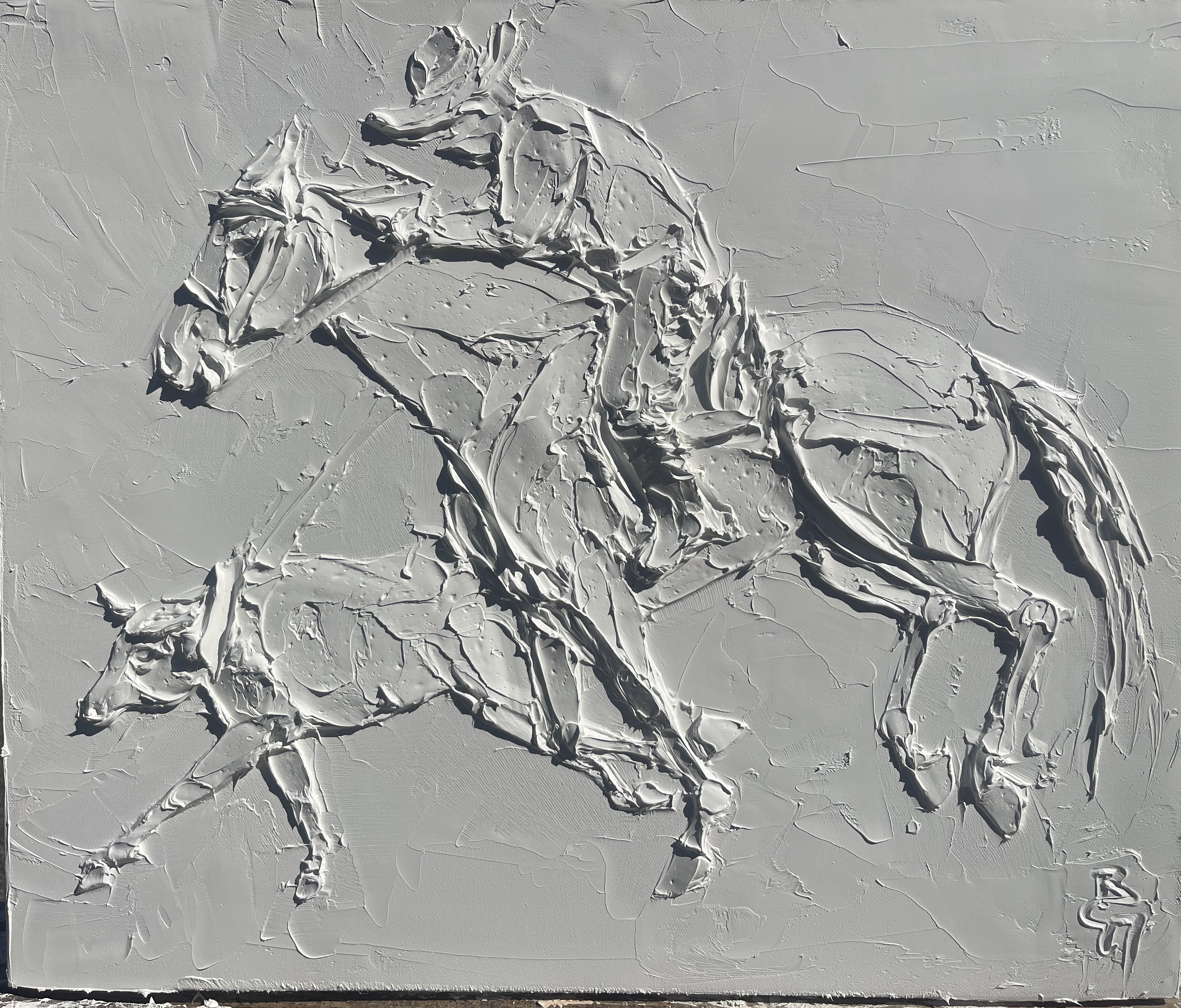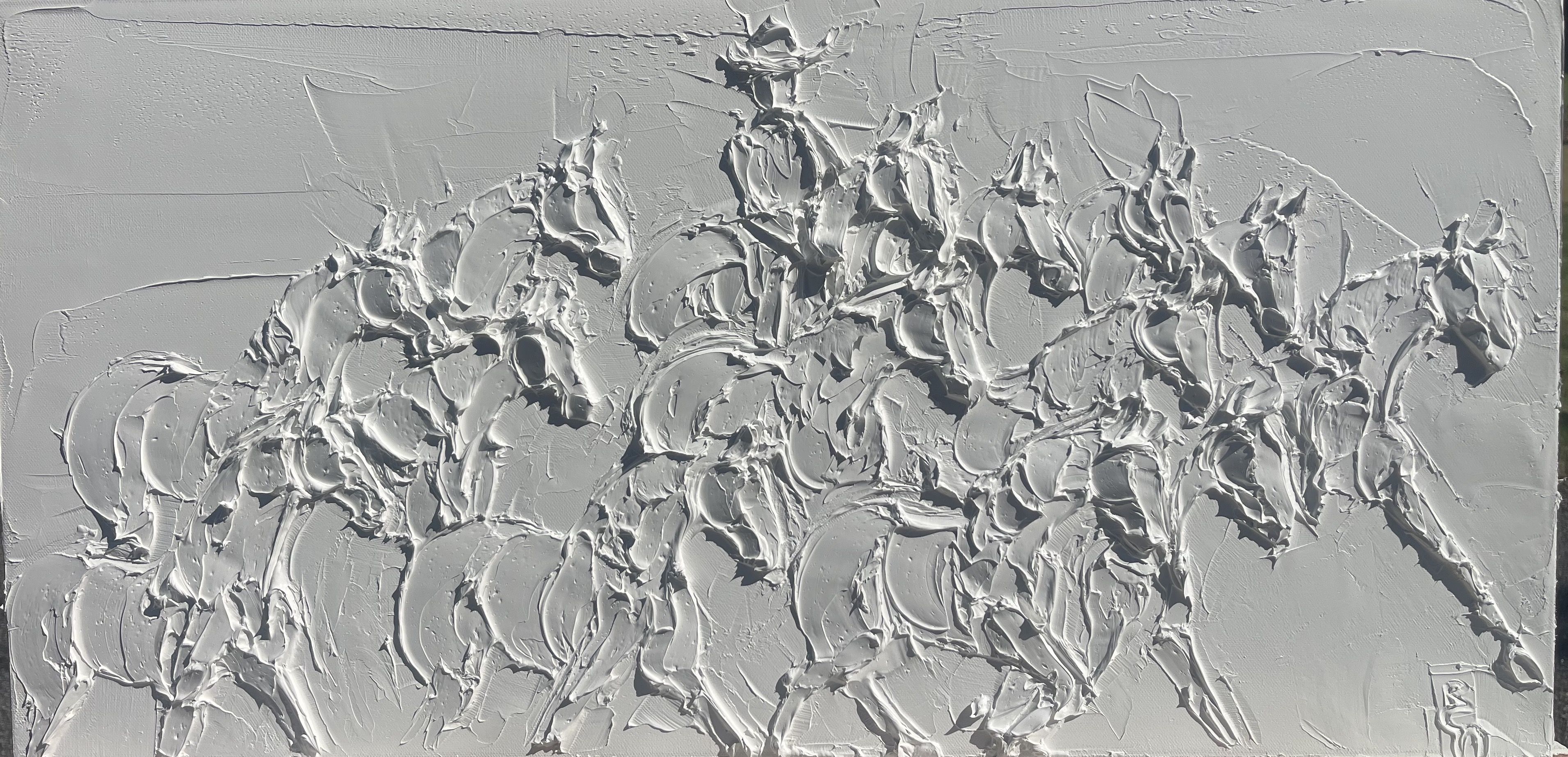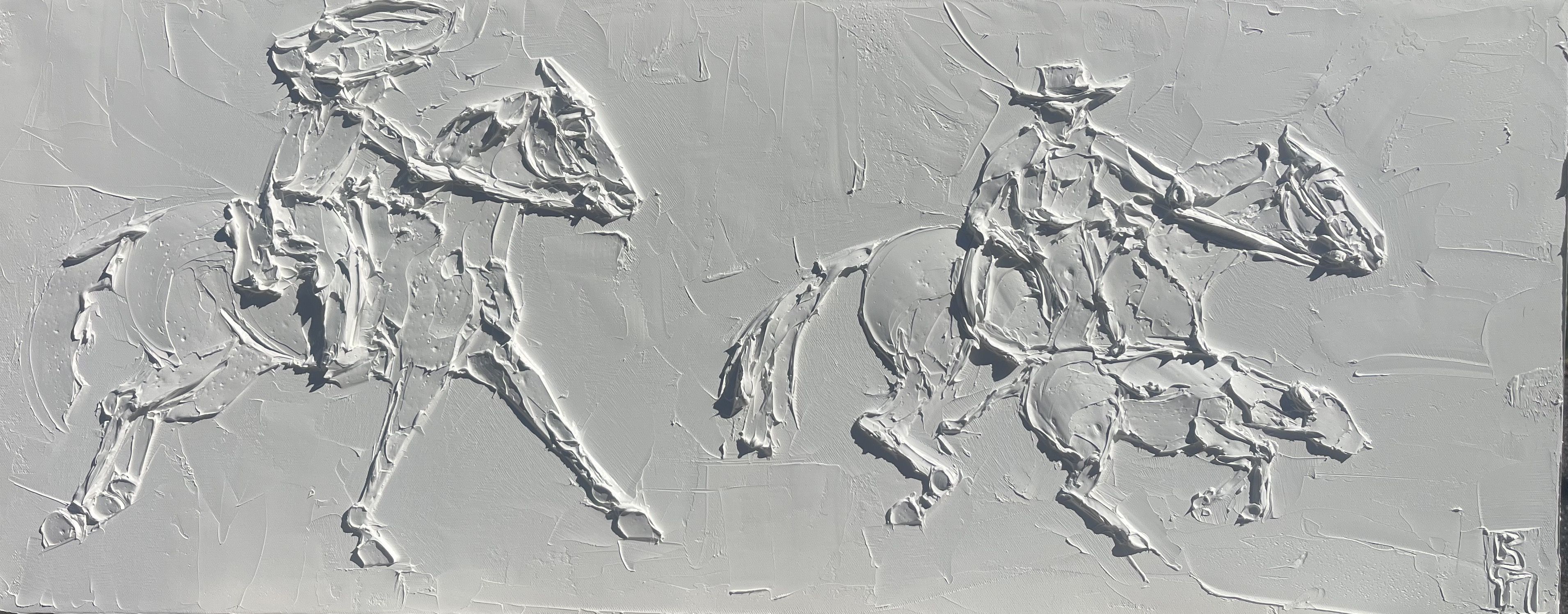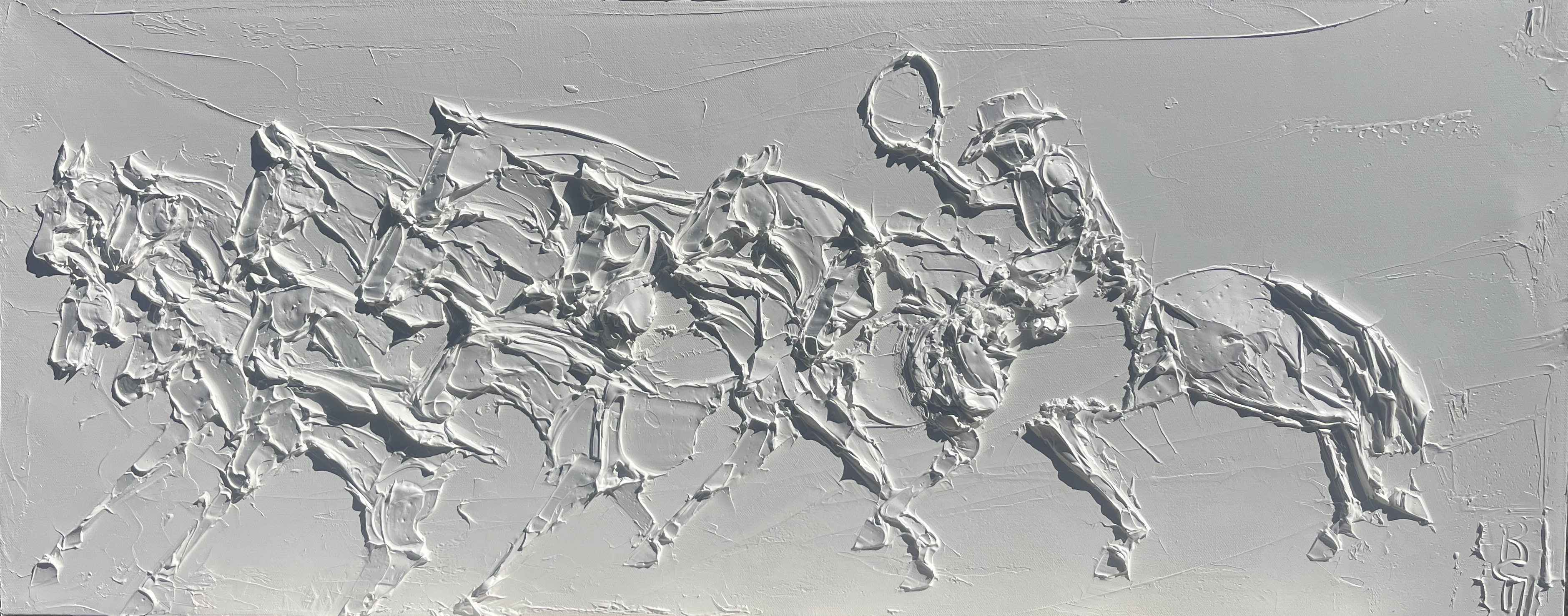 Roundup 16 In X 40 In Sculpted Oil Paint On Canvas