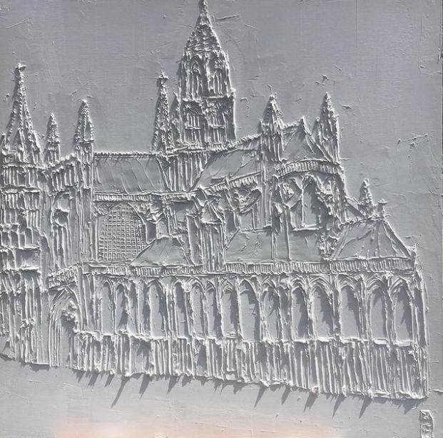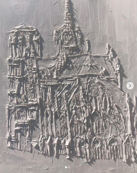Cathedrale Notre Dame De Paris 36 In X 48 In Sculpted Titanium White Oil Paint On Canvas 2022