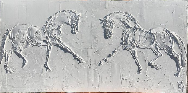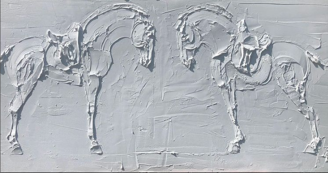 Chinese Porcelain Horses 24 In X 48 In Sculpted Titanium White Oil Paint On Canvas 2022
