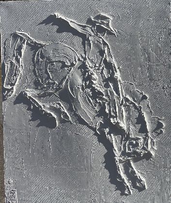 Bronc Rider 24 In X 30 In Sculpted Titanium White Oil Paint On Canvas 2025
